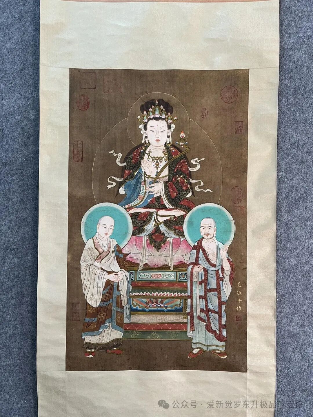 规格:画心尺寸:47x78.5厘米。拍品介绍:此画实物拍摄、观音圣像。大慈大悲、普度众生、法相庄严、开脸神韵、画工精致、设色艳丽、栩栩如生、惟妙惟肖、精品中的极品、极品中的神品。(妙哉)