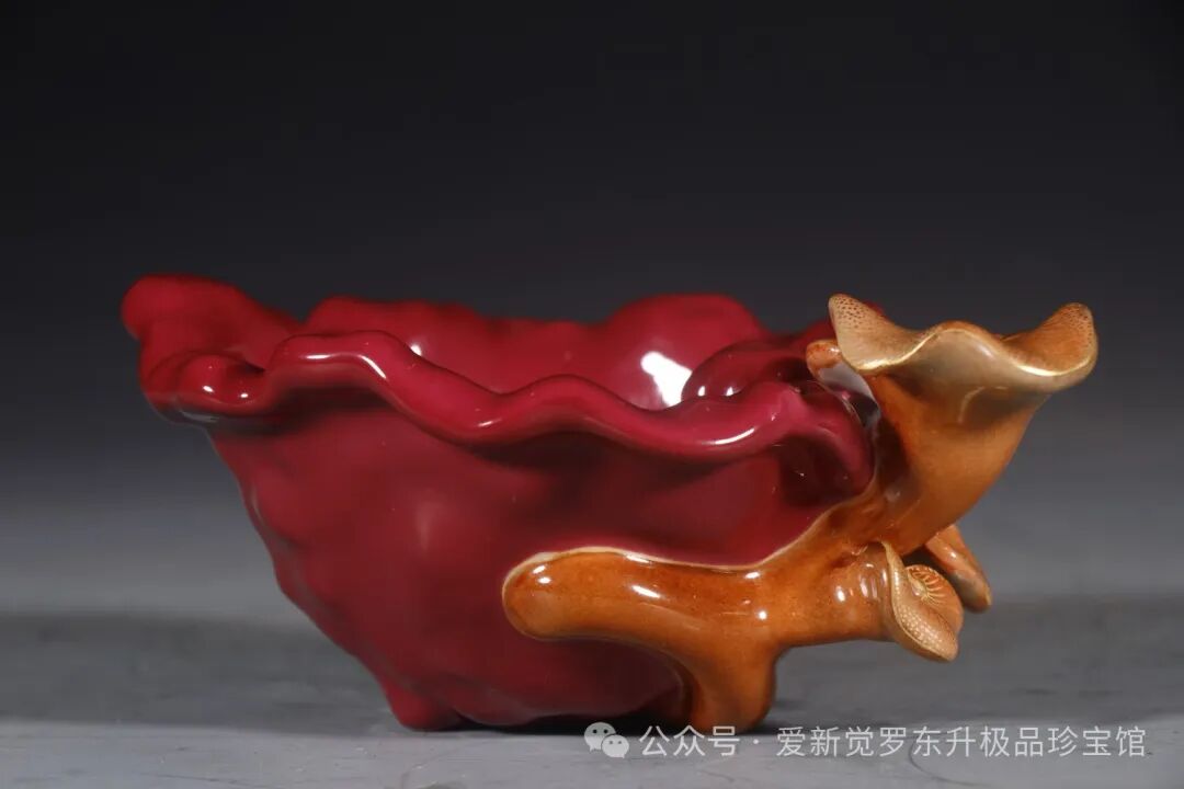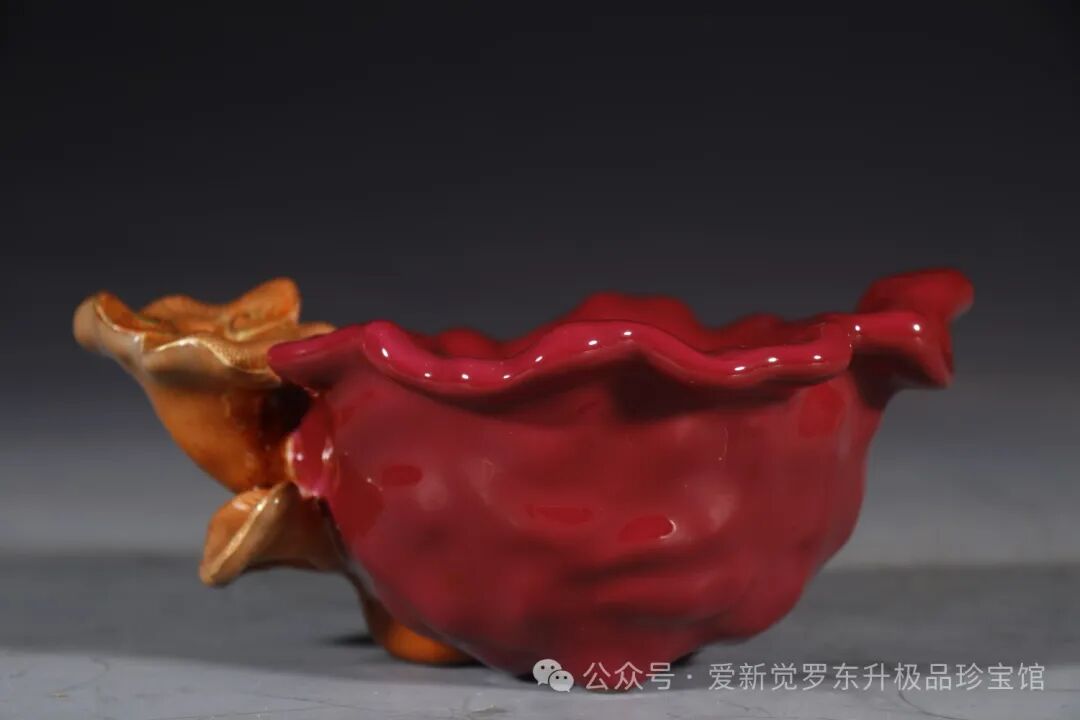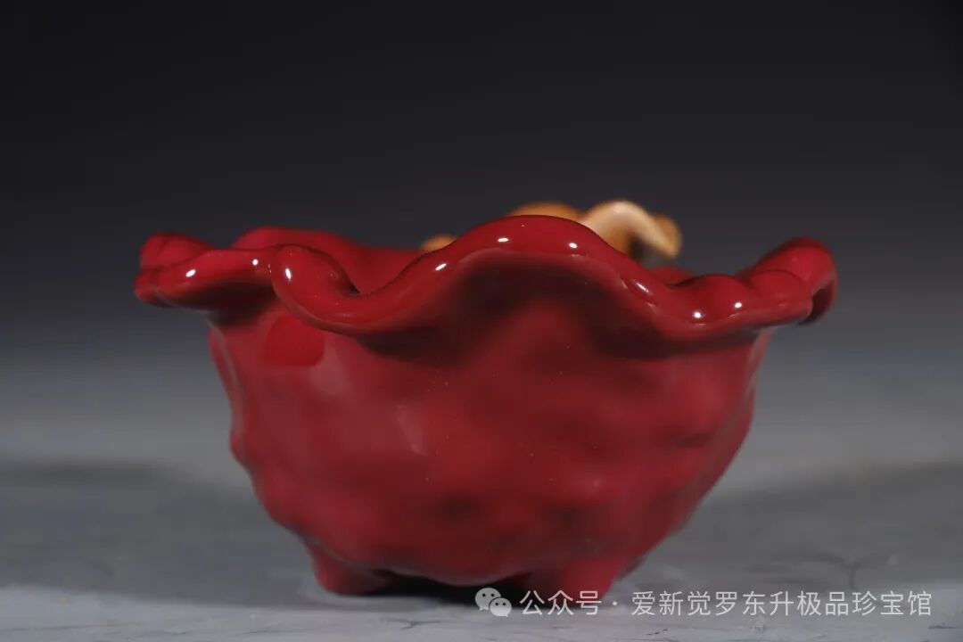 清乾隆:二七灵芝胭脂红水浅高6.5厘米 口径14厘米 底径7厘米