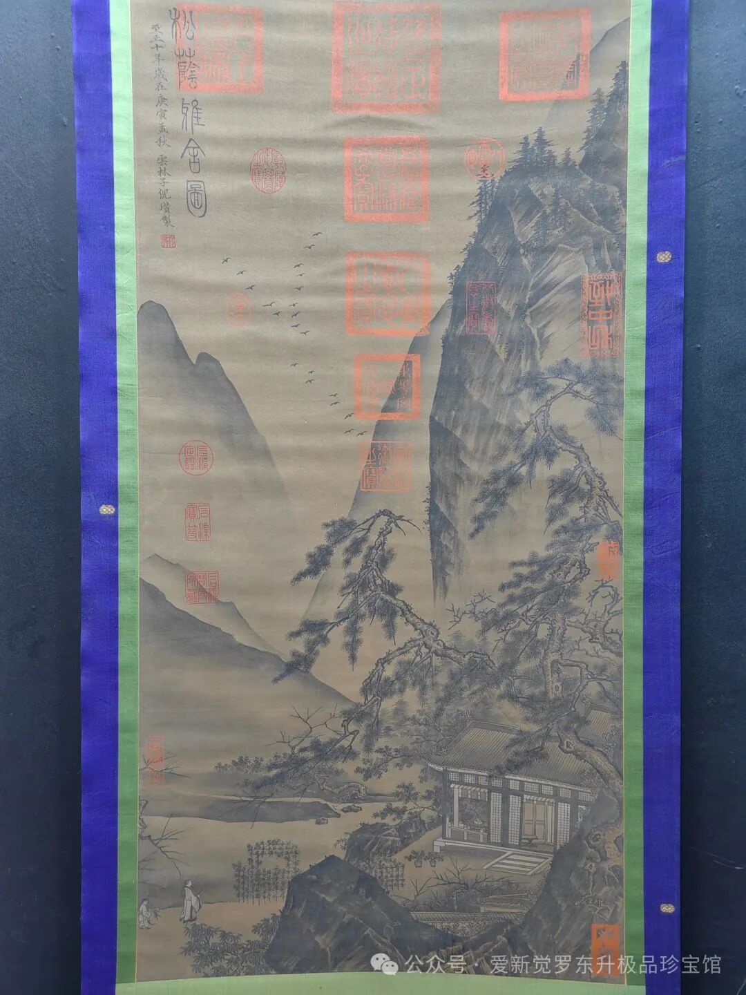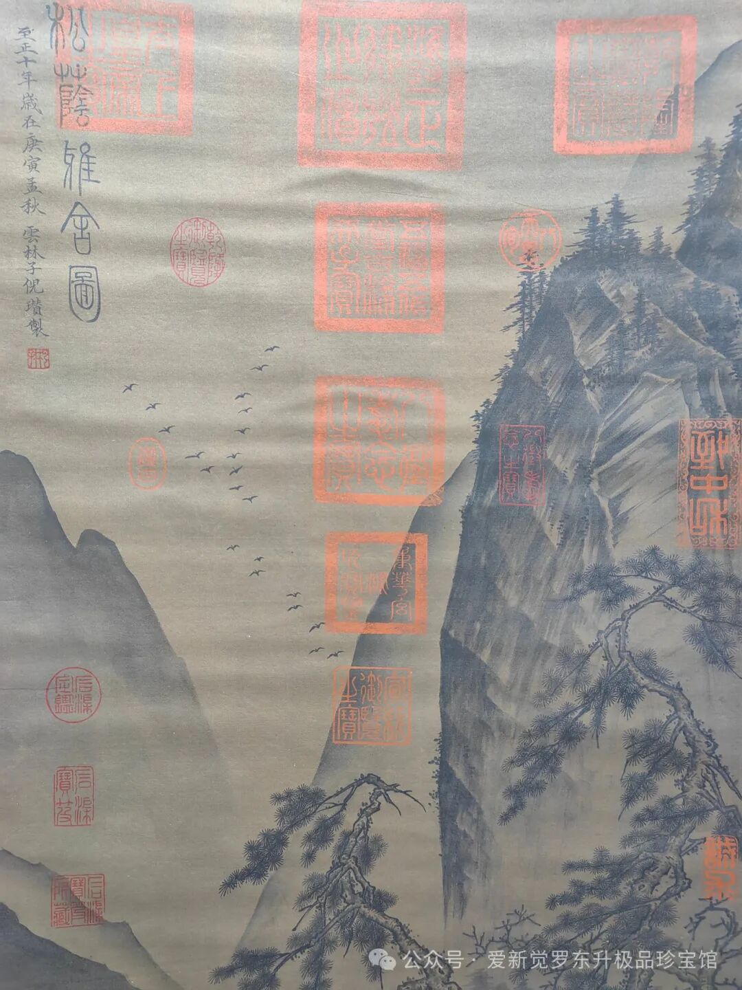 元,倪瓒,精品绢本:松䕃雅舍图47.1X96