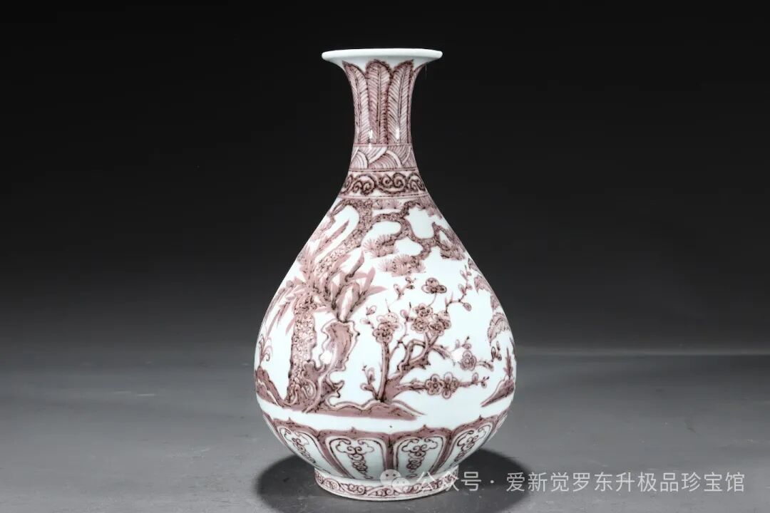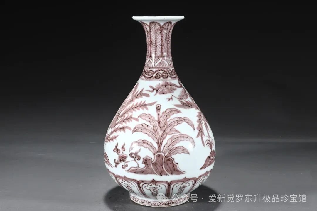 明洪武年制釉里红松竹梅玉壶春瓶尺寸:高:33cm 腹径:19.8cm