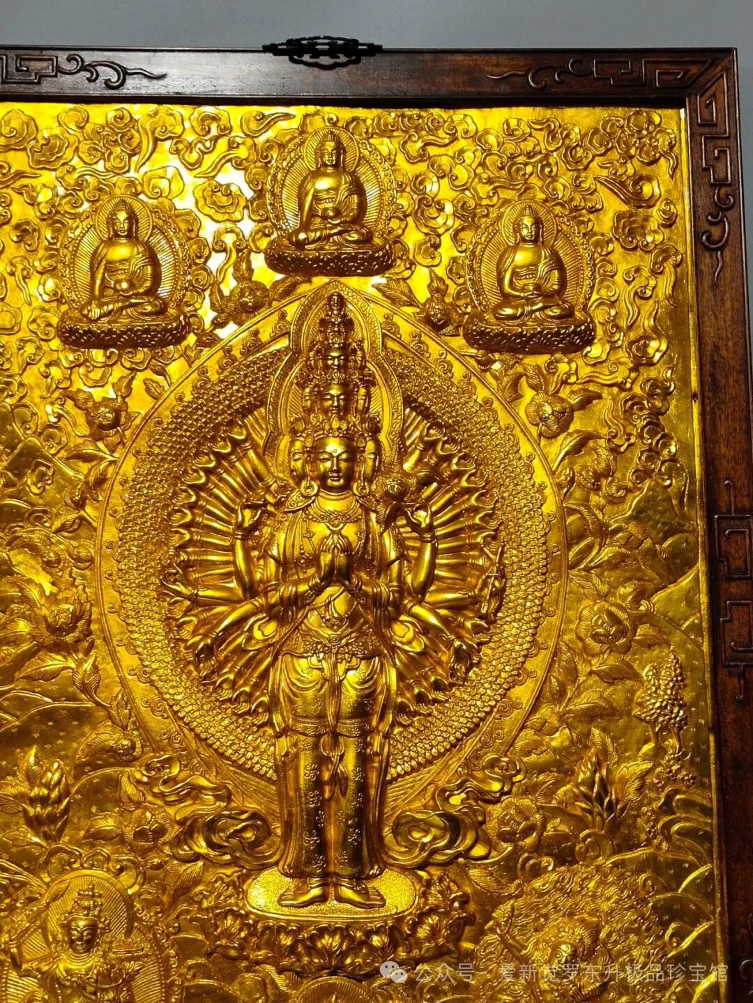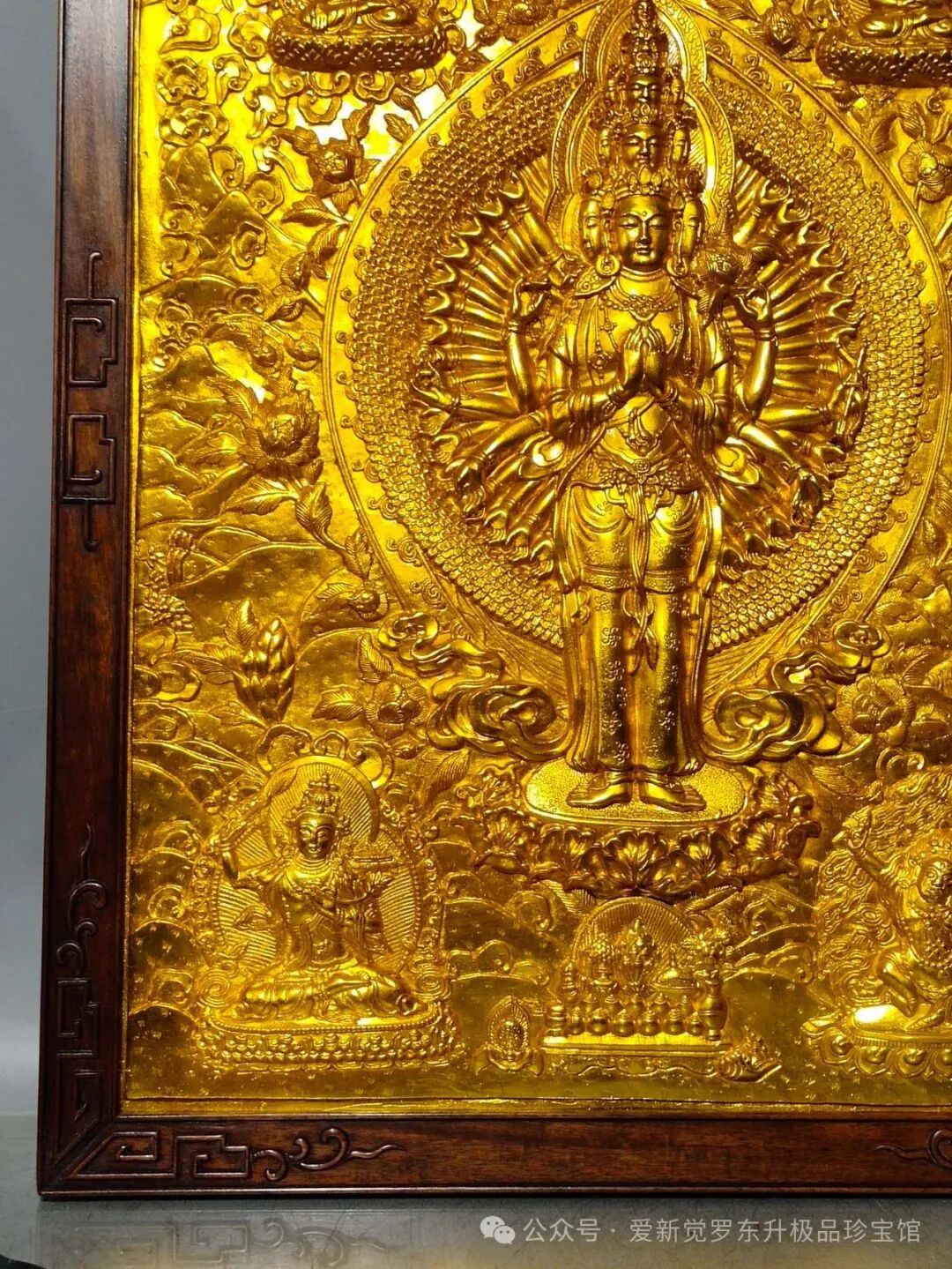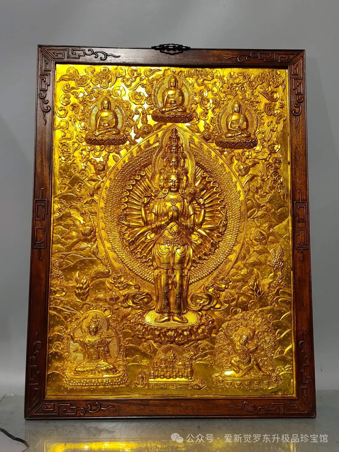 花梨木鎏真金满工錾千手观音供像唐卡摆件61号