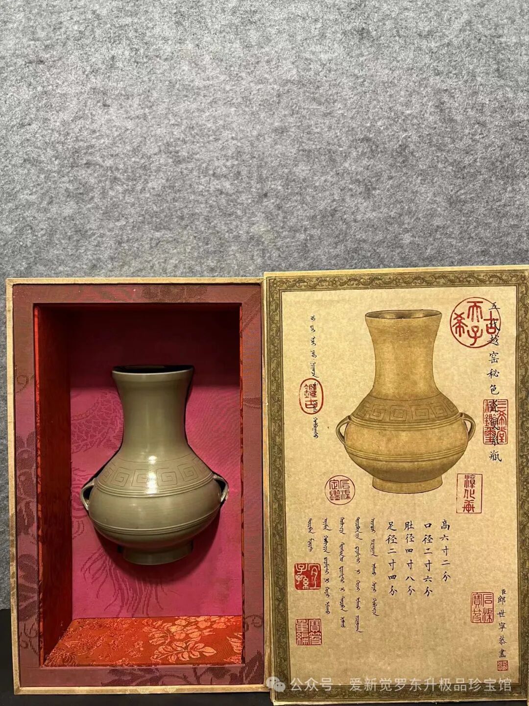 郎世宁●五代越窑秘色瓷双系瓶瓷器尺寸:20.5×16CM箱子尺寸:25×40CM