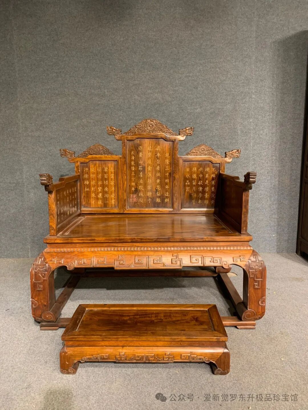 当然,我们也要看到艺术品市场的复杂性和多元性。不同地区、不同文化背景下的艺术品市场有着各自的特点和发展规律。因此,投资者在投资过程中需要综合考虑各种因素,包括艺术品的品质、市场的供求关系、政策法规的影响等。同时,还需要关注国际艺术品市场的动态,以便更好地把握投资机会。乾隆三十四年造办处奉旨着做黄花梨博古柜三组,书桌壹张,宝座壹张雕刻御诗安置于避暑山庄澹泊敬诚殿以供御用!长318高2米厚38字台长220宽1米高82宝座长110宽70高120