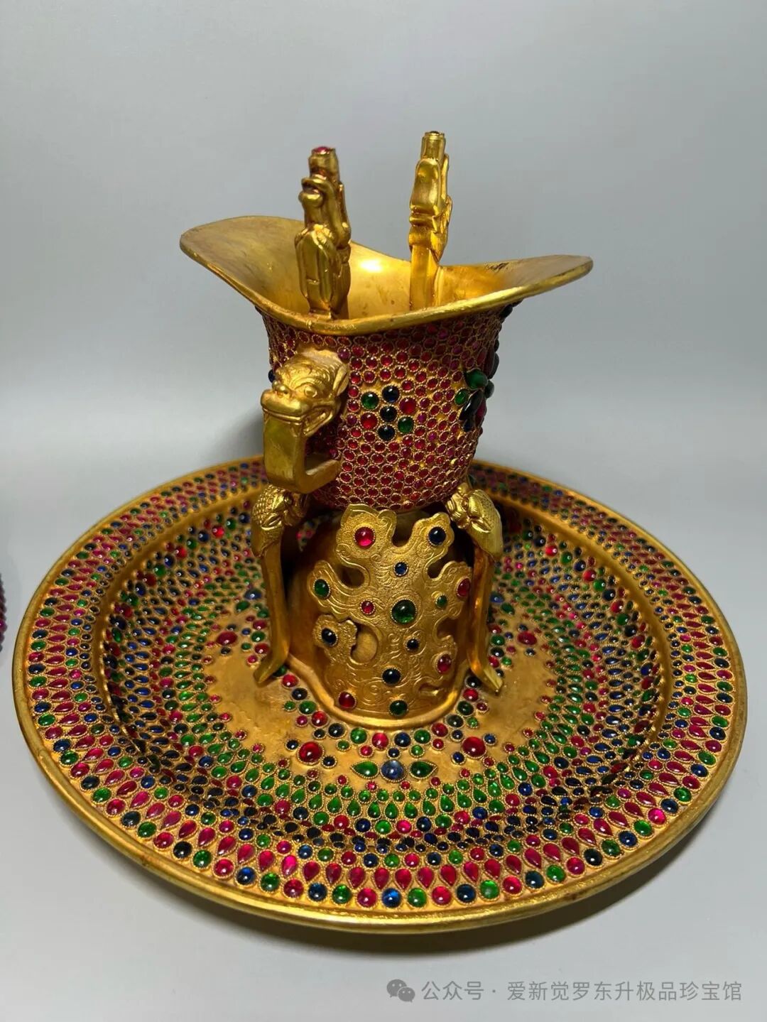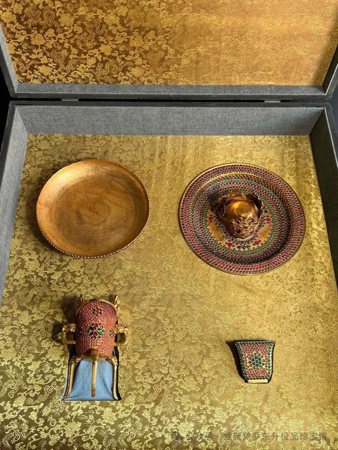 鎏金镶嵌宝石一套【佛前供盘】供盘一套重:8.5斤箱子长70cm