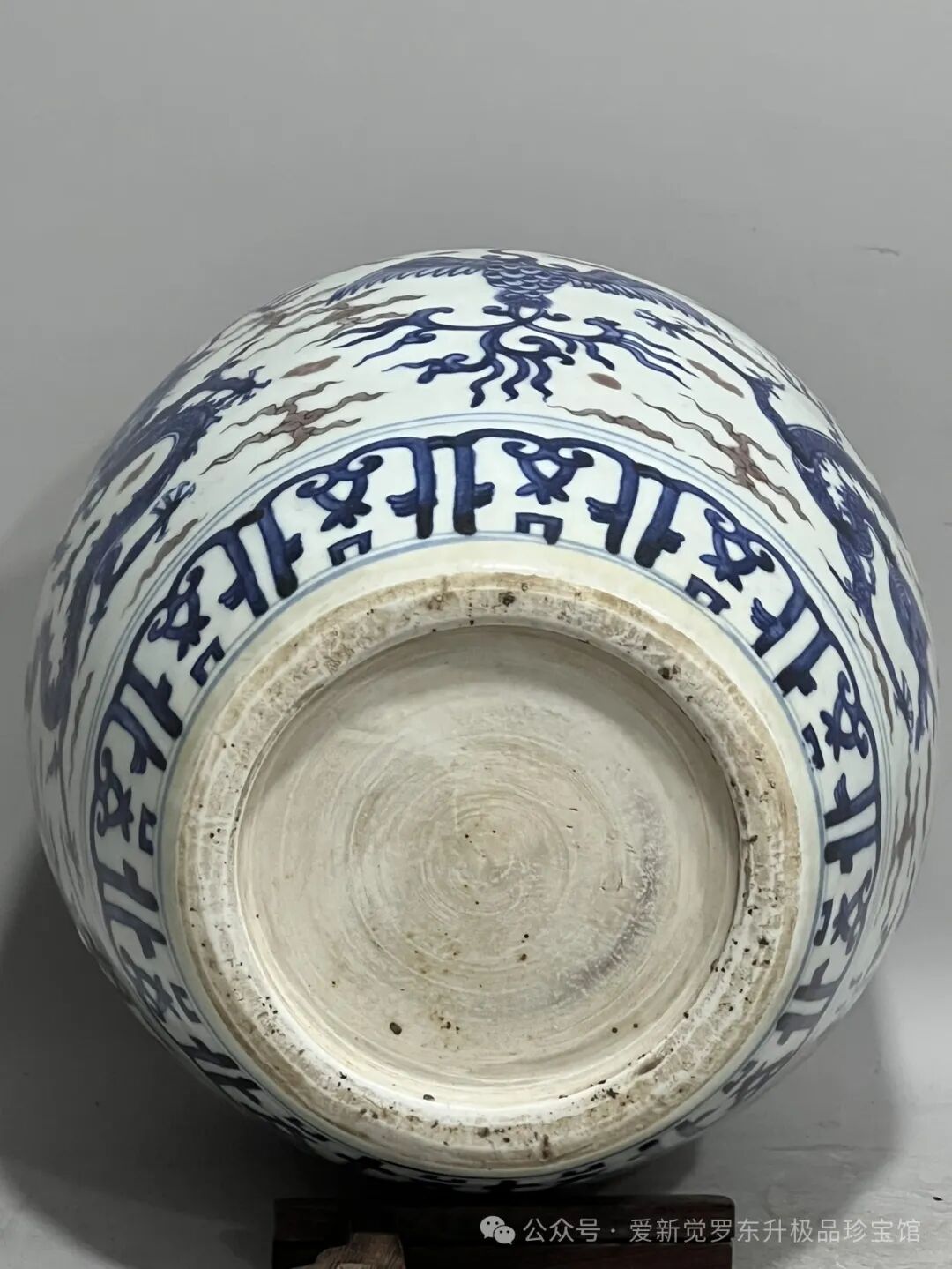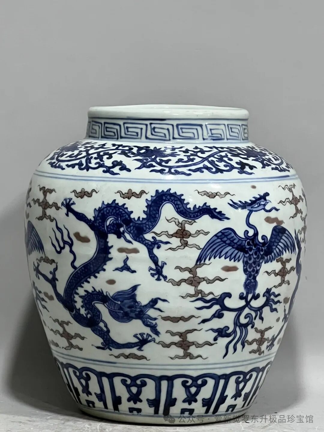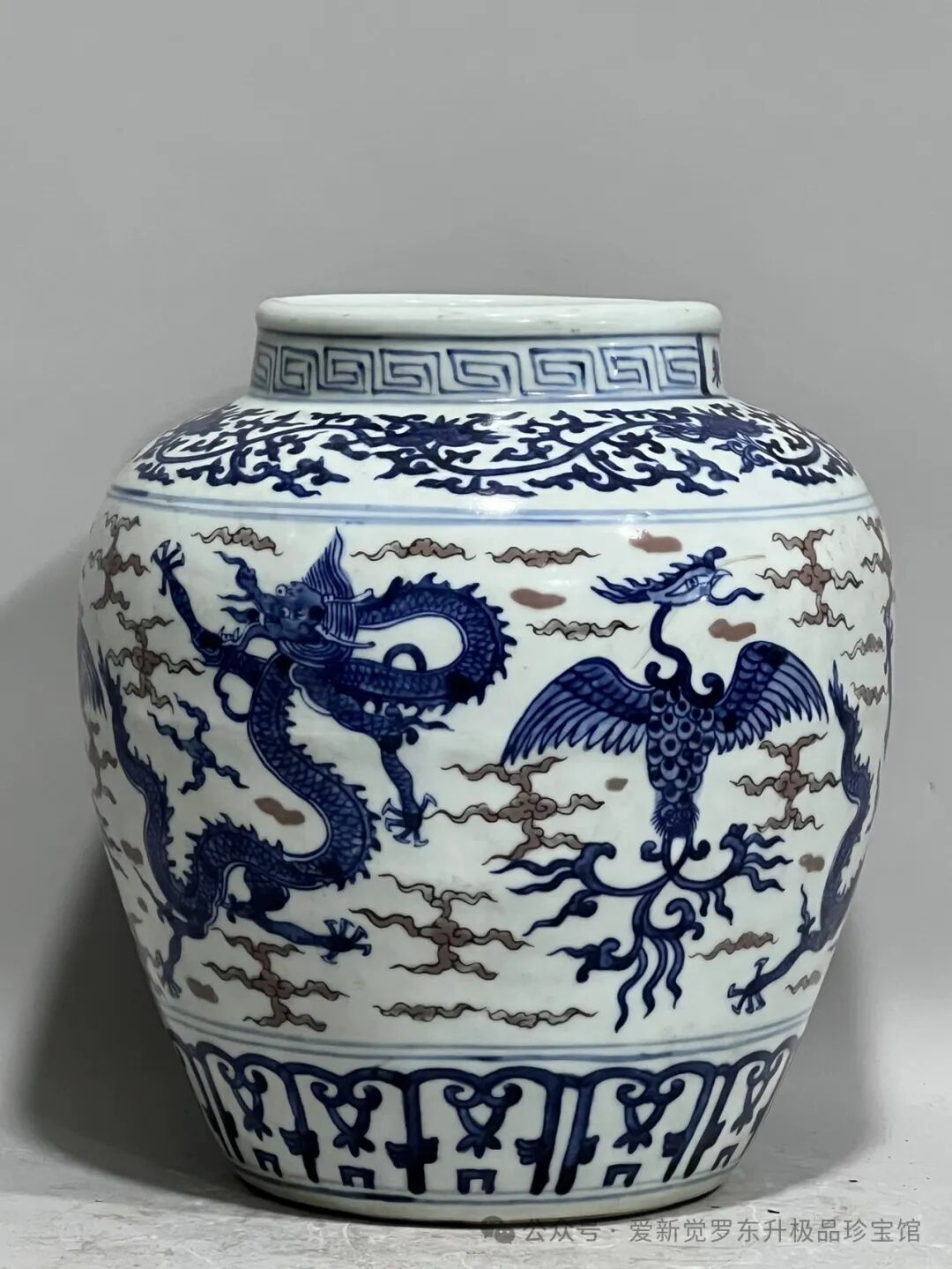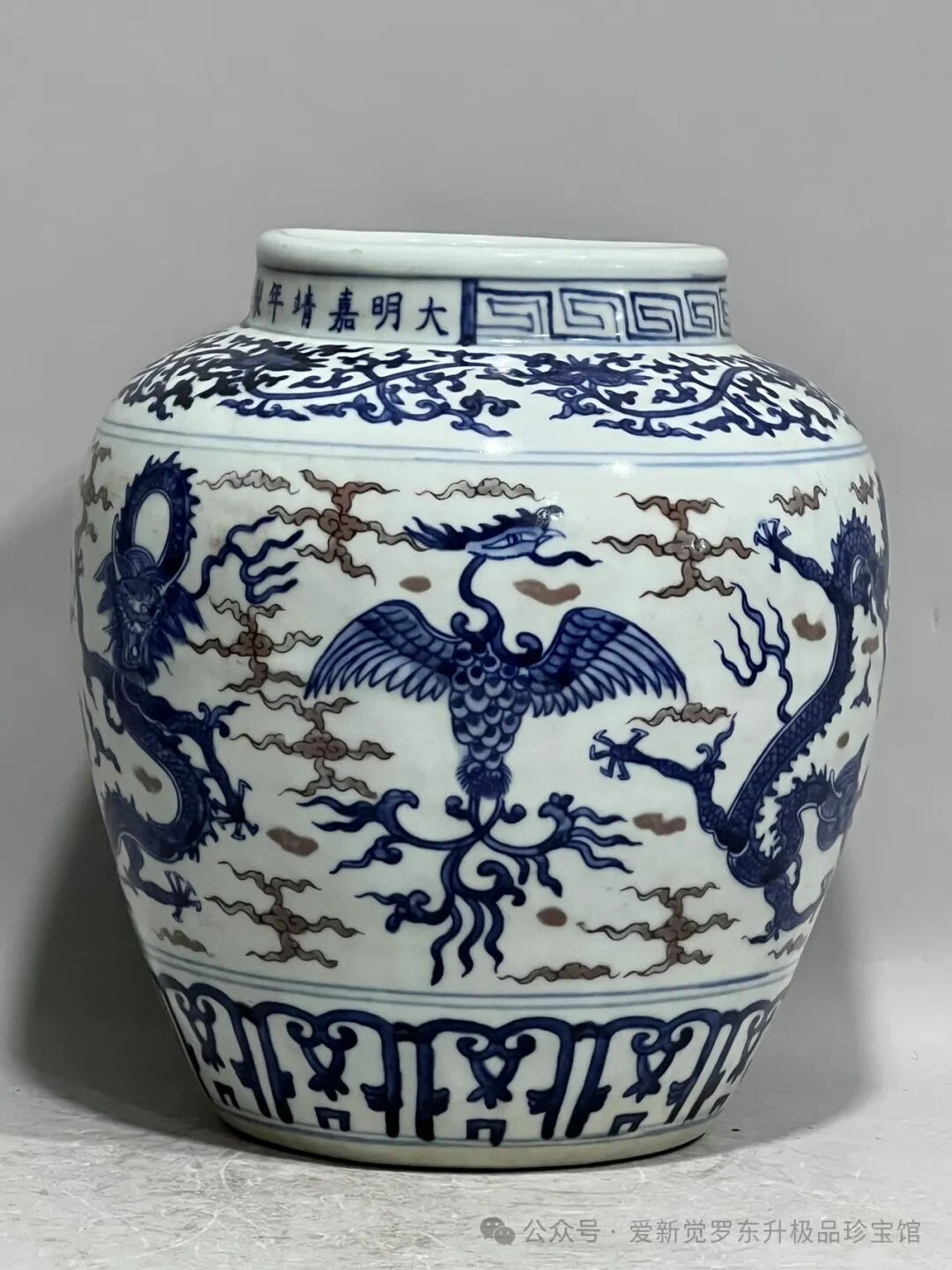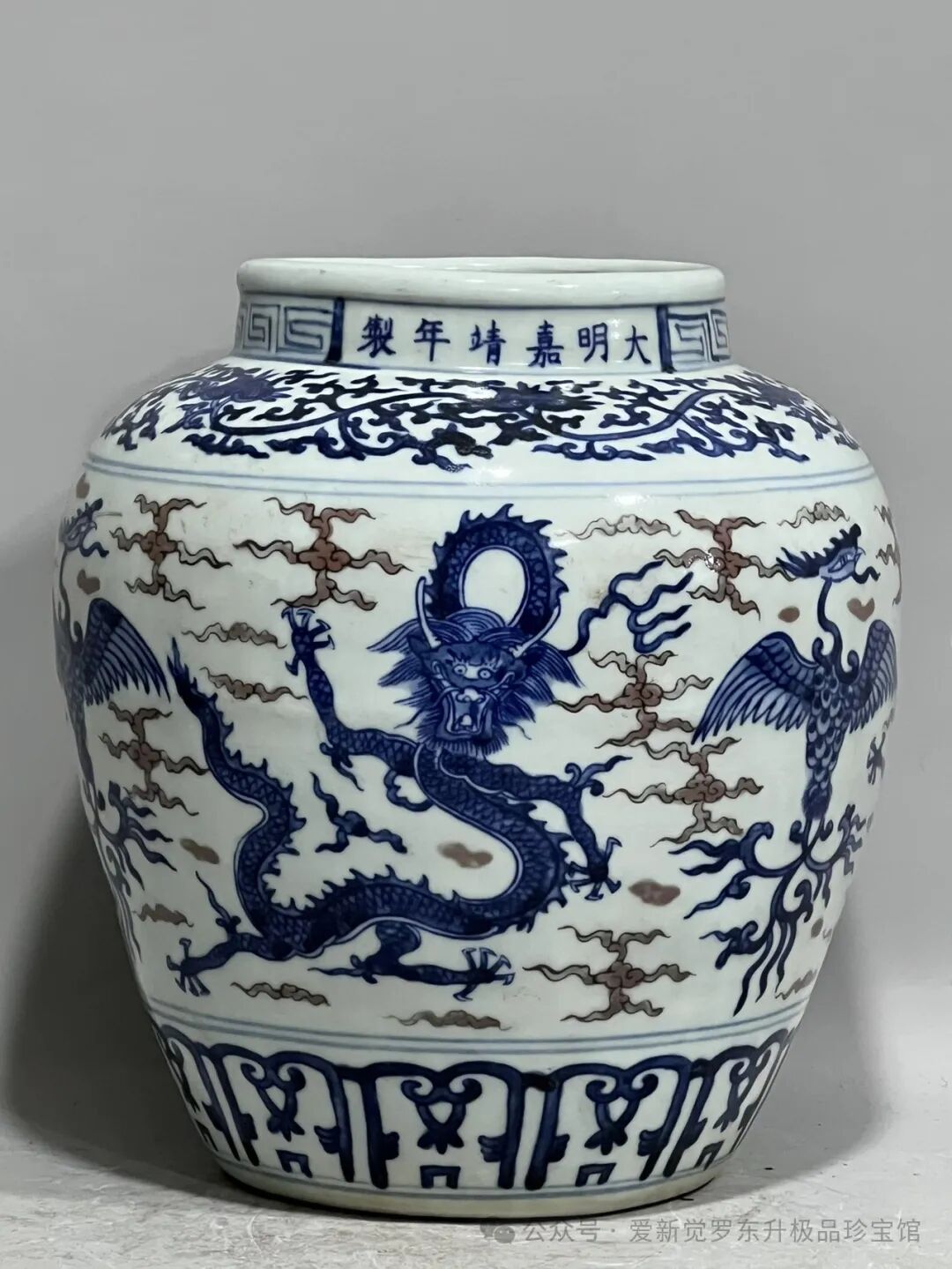 明,嘉靖缠枝莲四龙四凤罐一个,高23.5厘米,口径12.3厘米,肚径21.8厘米,底13.5厘米