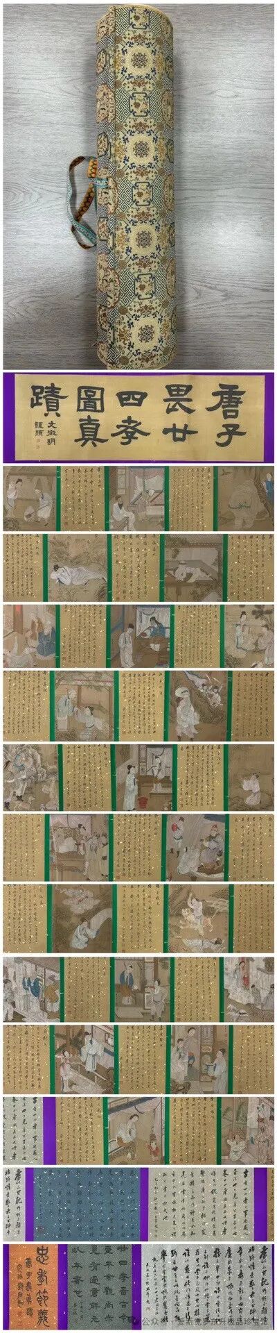 旧藏.明.唐伯虎.精品丝绢(二十四孝图).画心尺寸:55cm*1783cm总长:2478cm。