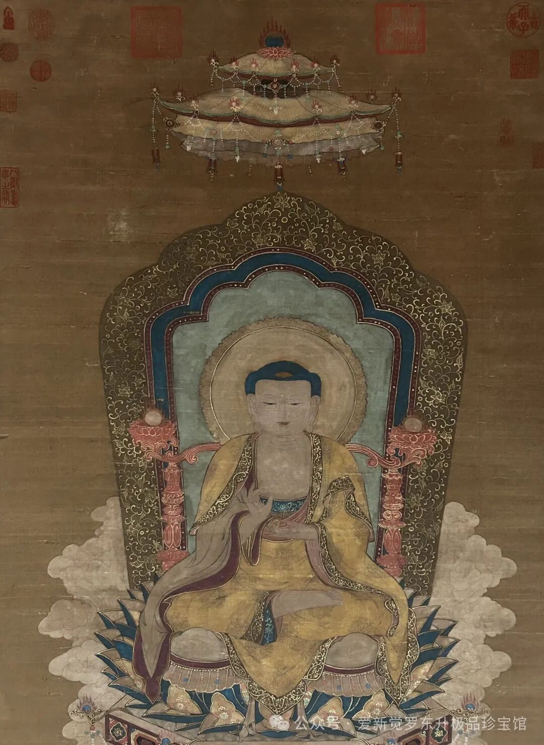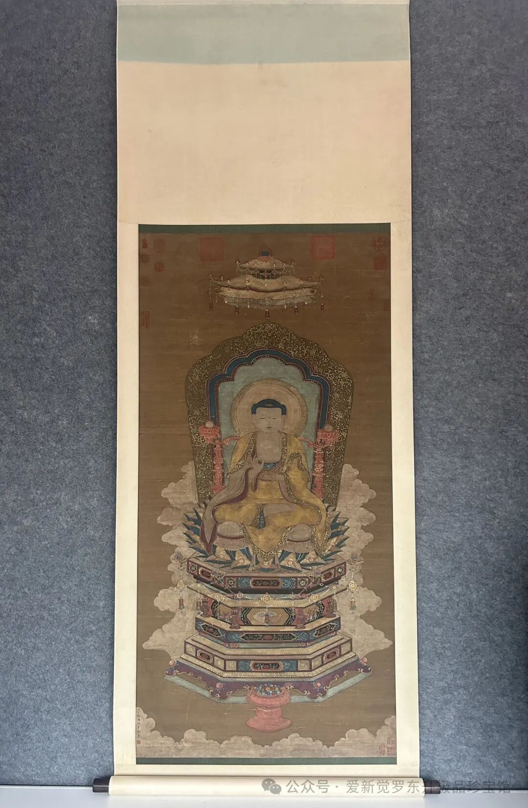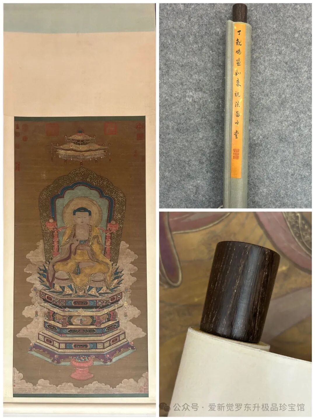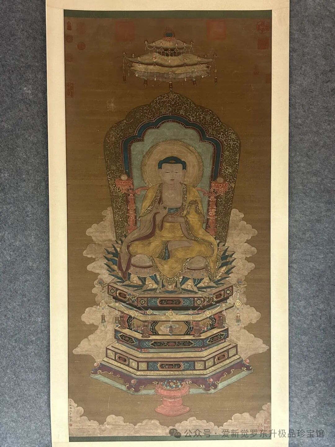 旧藏.清.丁观鹏.精品绢本(如来说法图),画心尺寸:72cm*148cm。