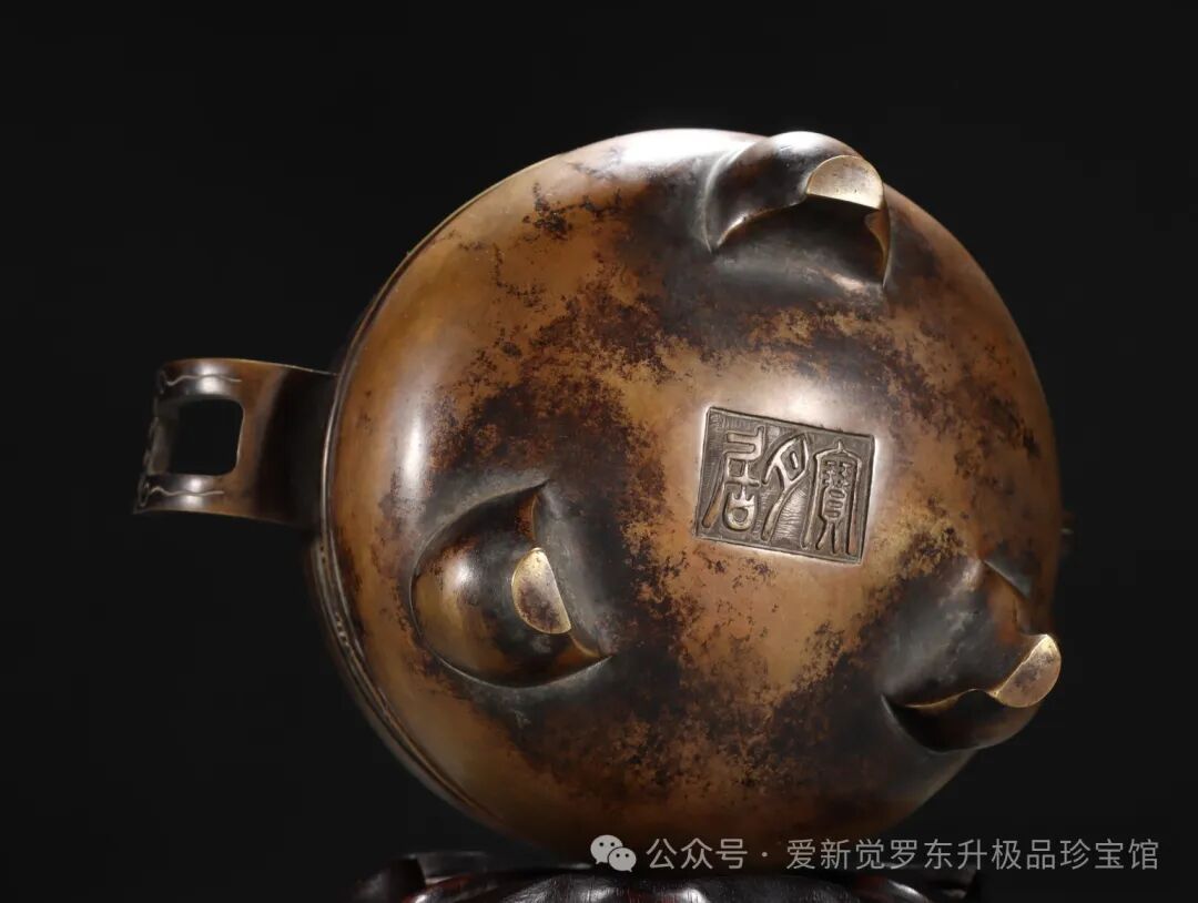 明 精铸铜胎三足双耳香炉规格:宽18.5㎝高18.5㎝重1729g