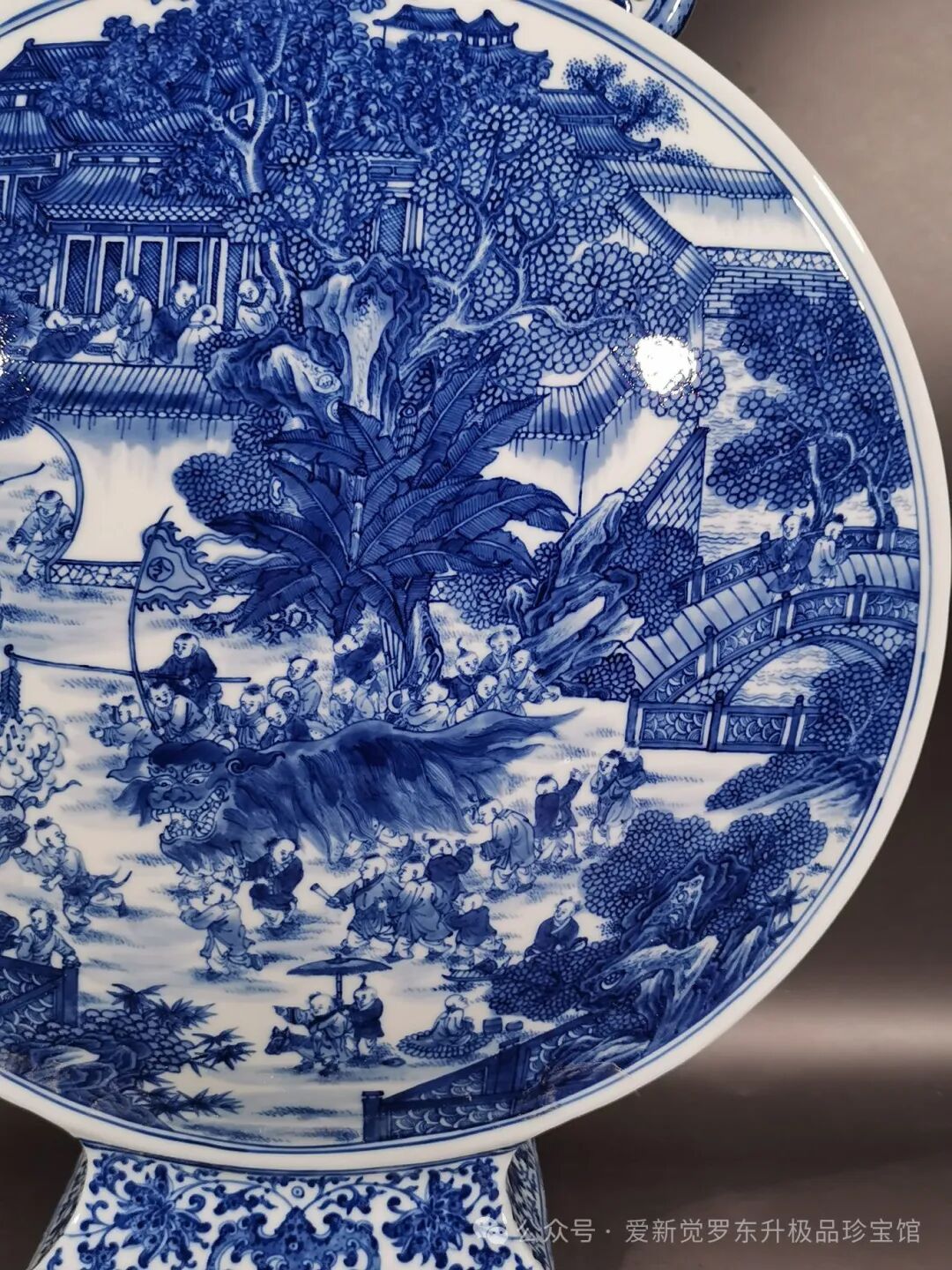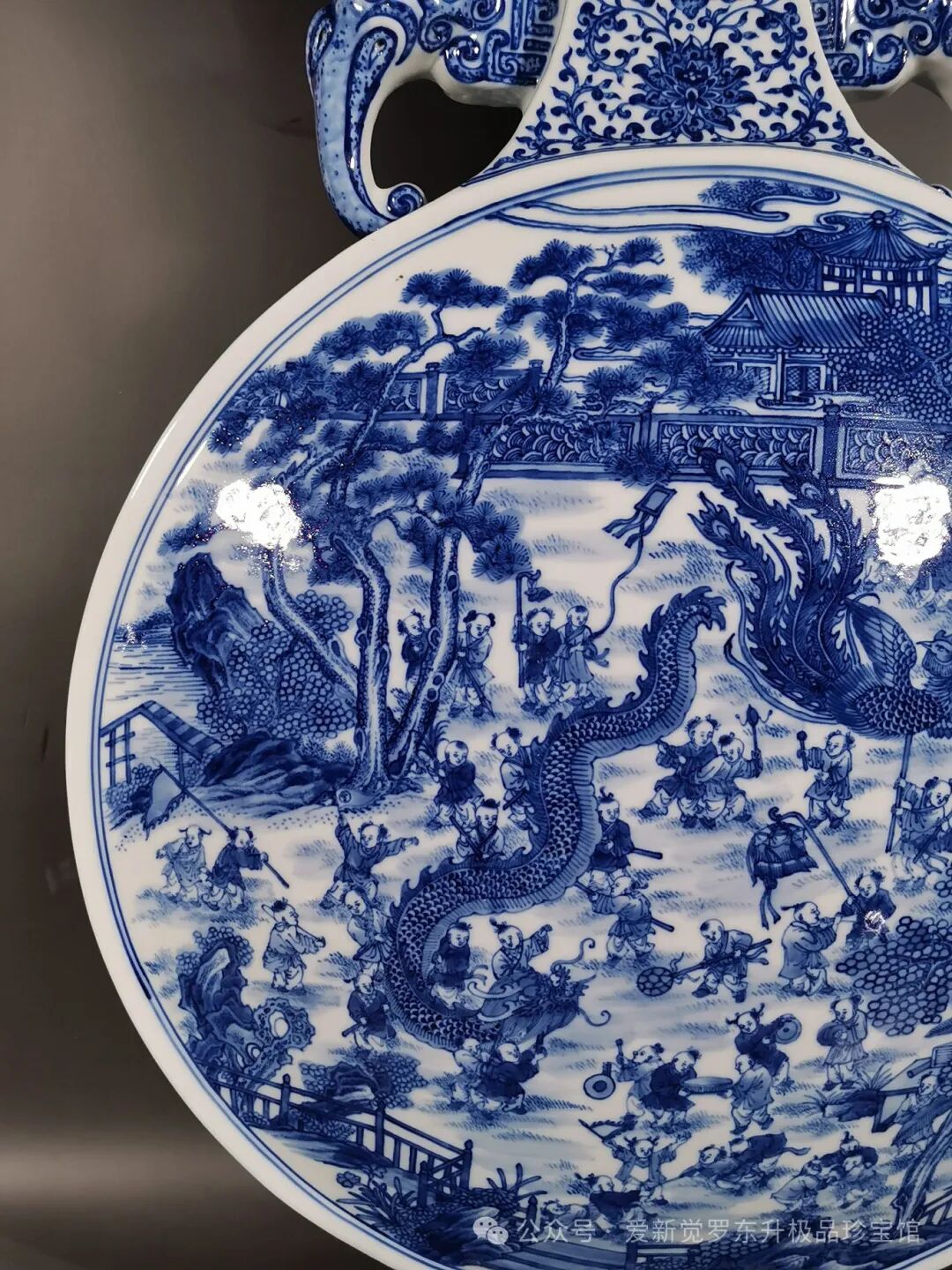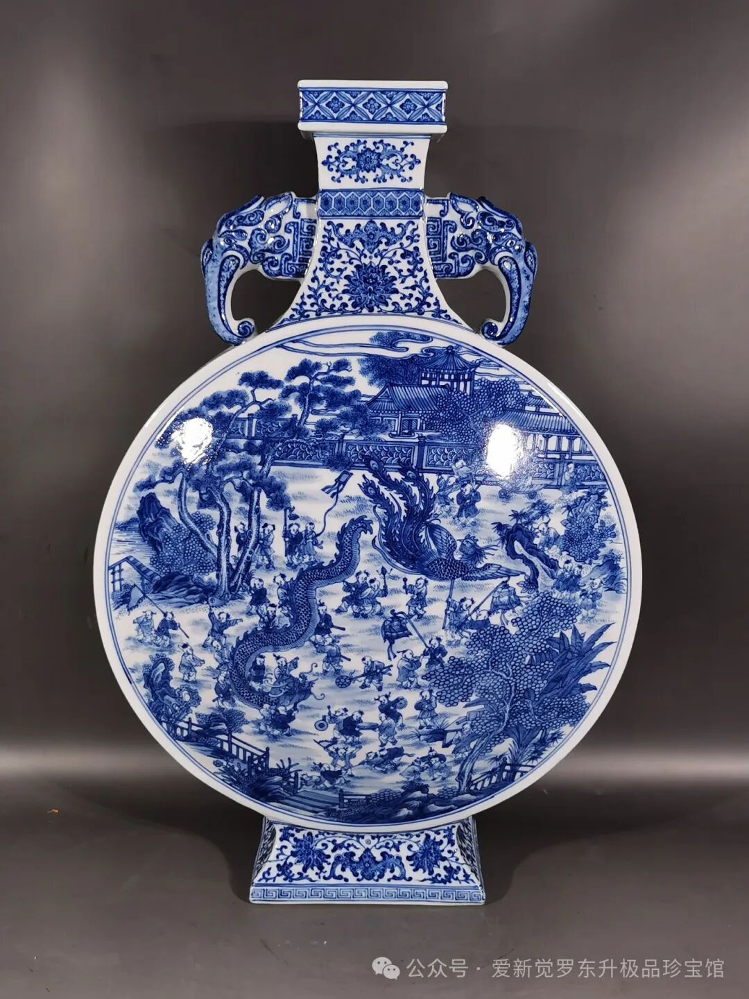 清乾隆,青花缠枝莲纹开窗童子闹元宵双耳抱月瓶高度64.5口径11,肚径42