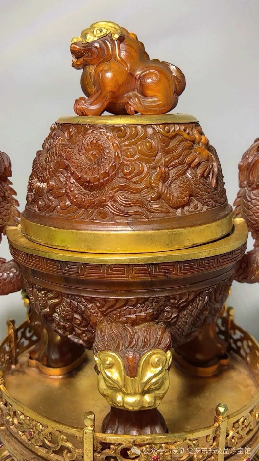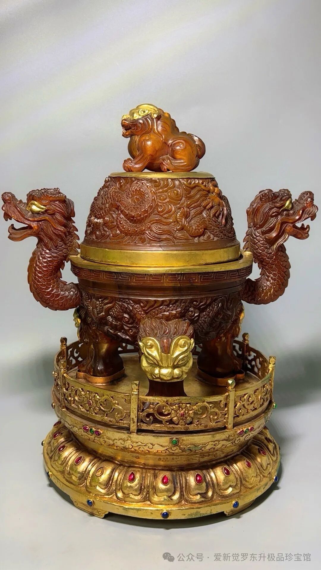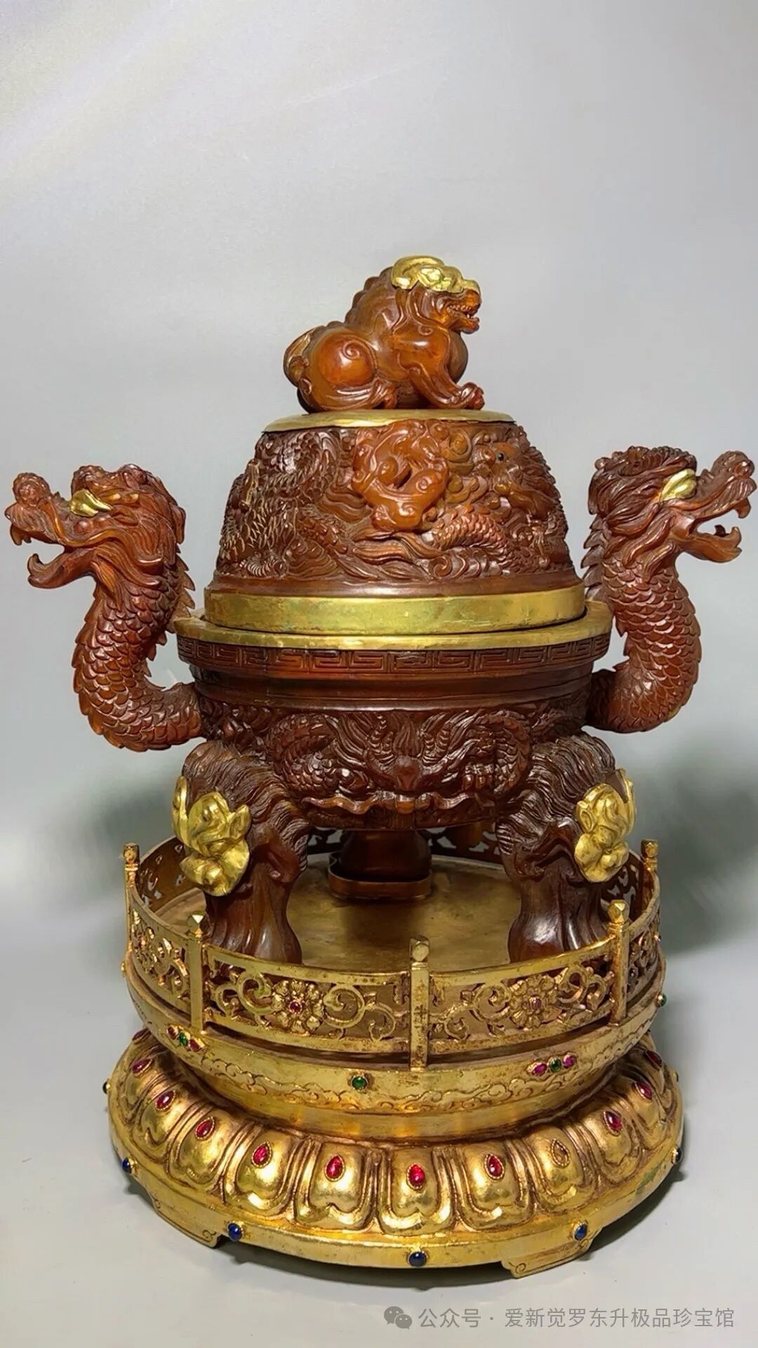 精工鎏金镶嵌牛角【龙纹盖炉】高35cm 宽30cm重7.5斤