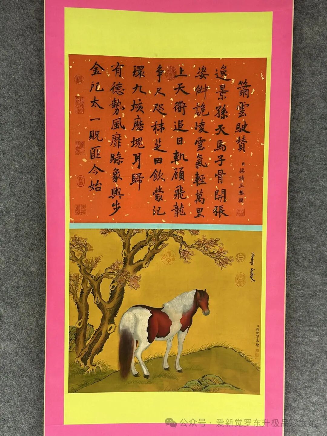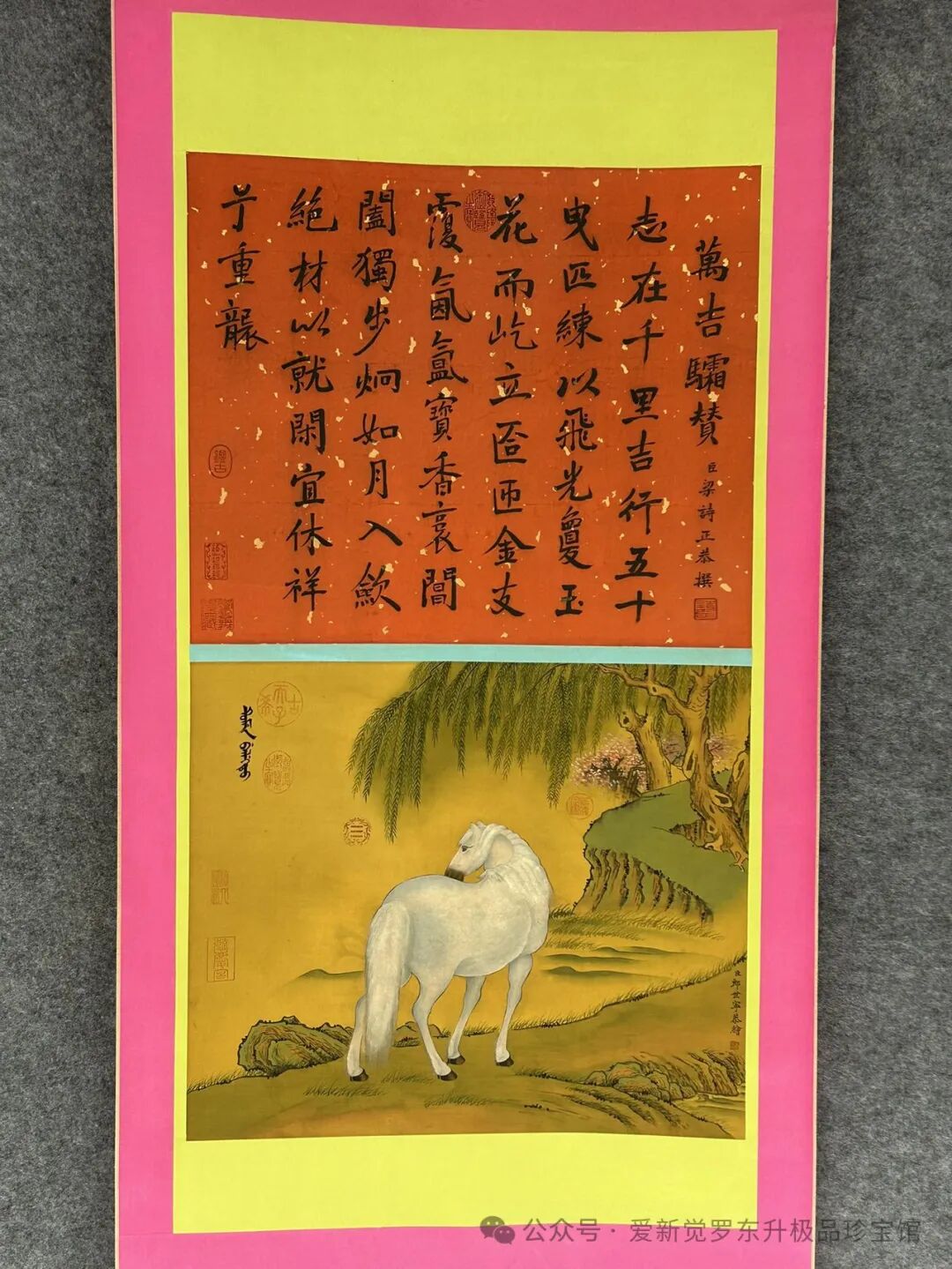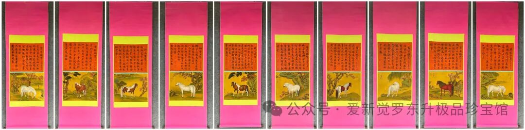 旧藏、清代 郎世宁精品绢本(十骏马图)十条屏 单个画心加祠堂尺寸:56x98厘米
