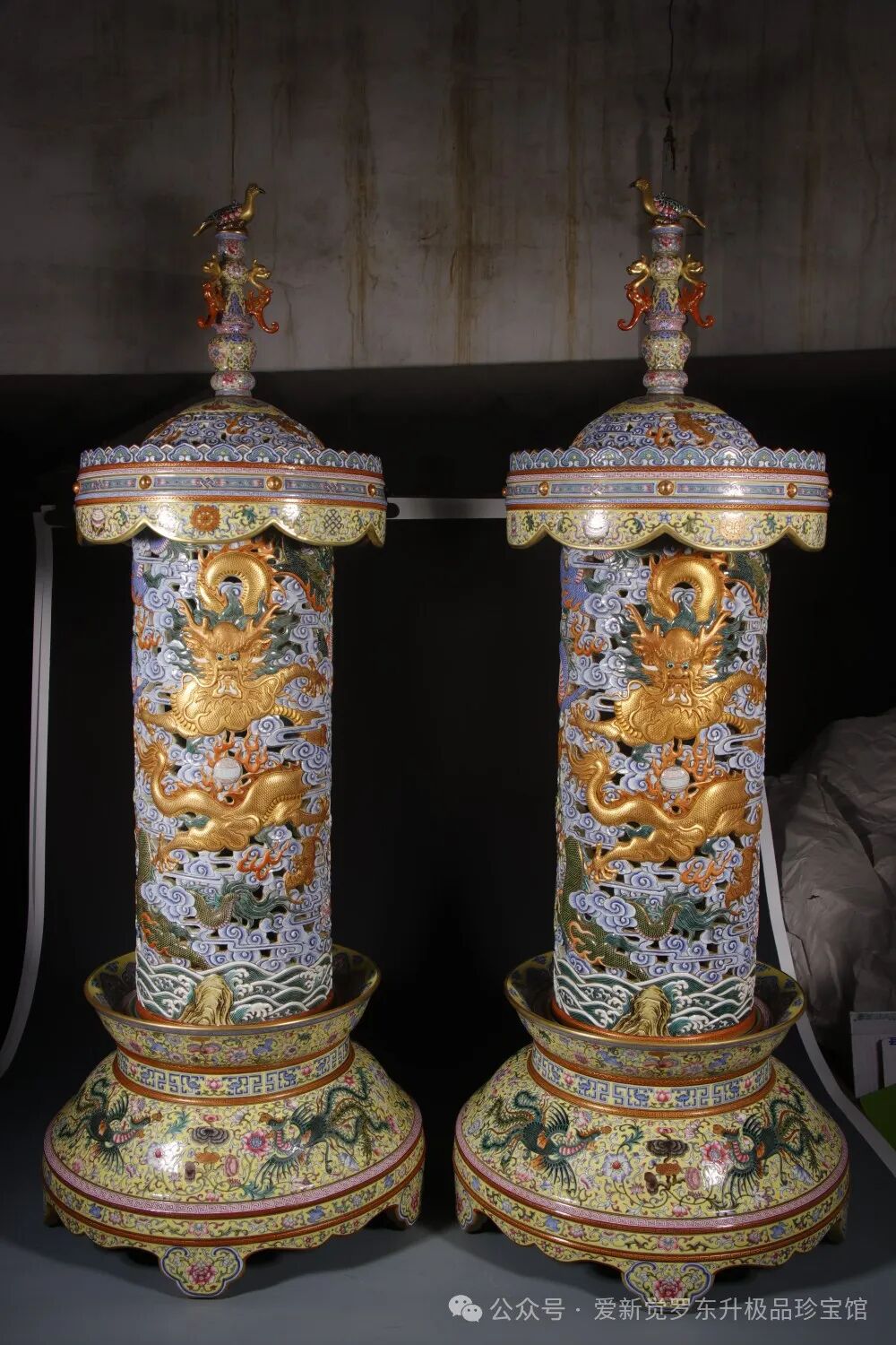 清乾隆:珐琅彩重器镂空雕刻五龙四凰香薰 高106厘米 底40厘米口径21厘米