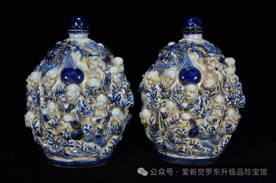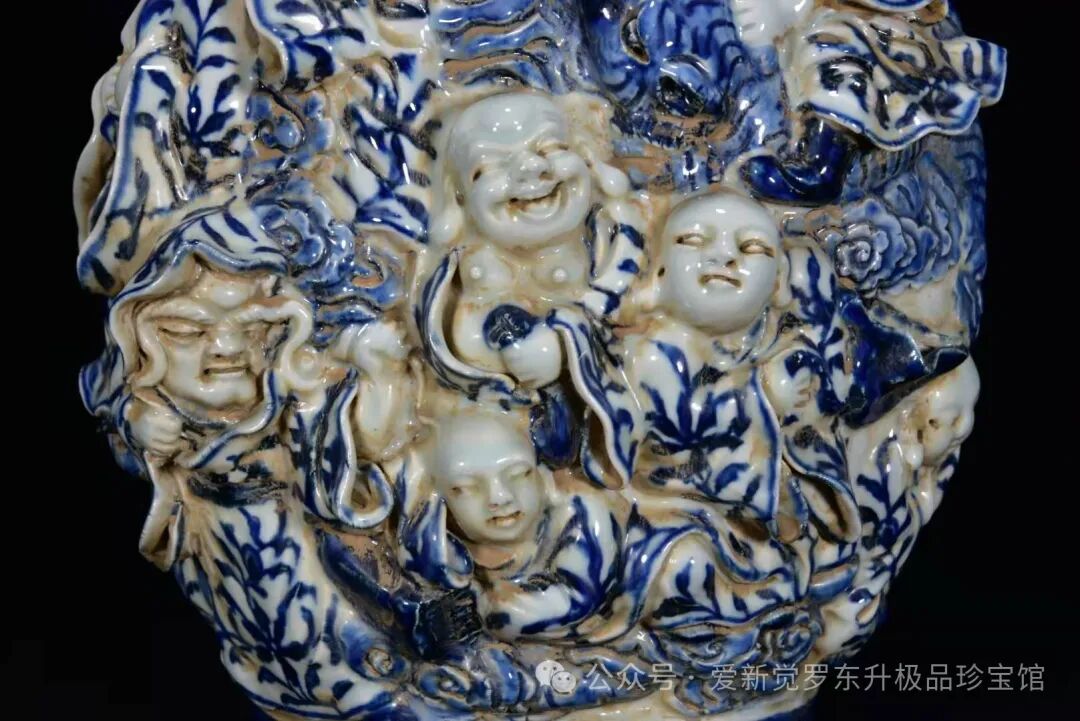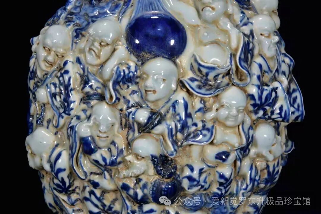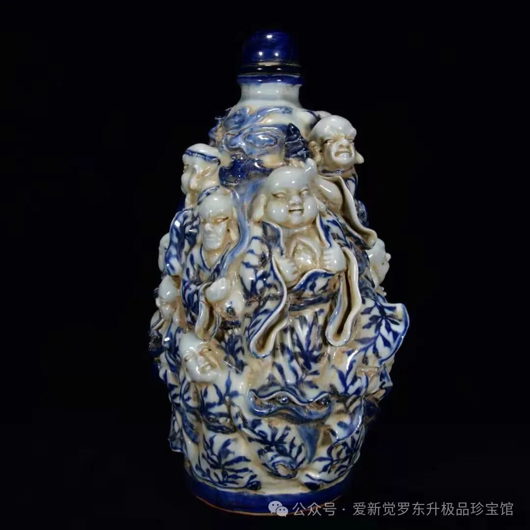 元青花雕刻十八罗汉纹酒瓶33*23m