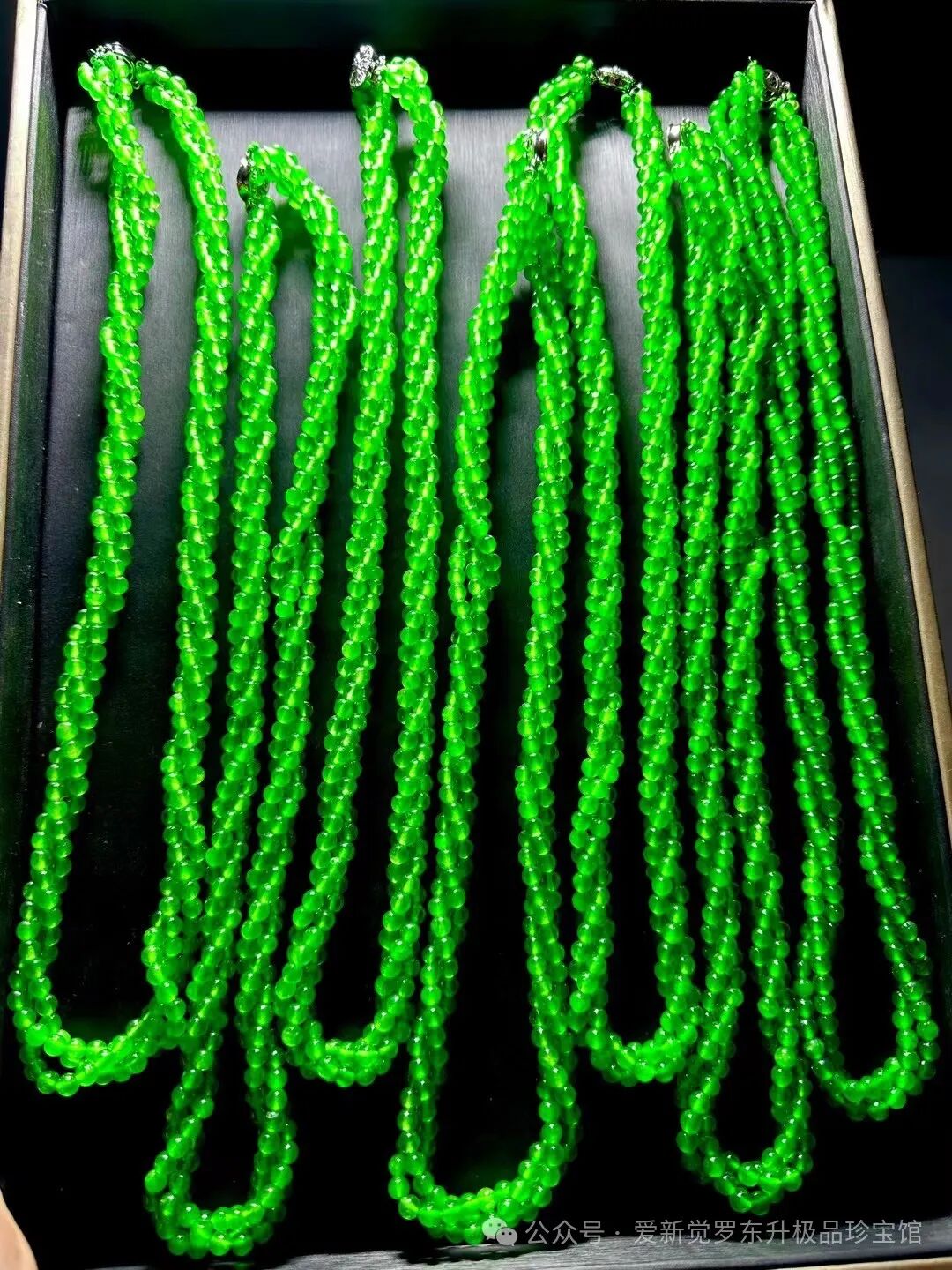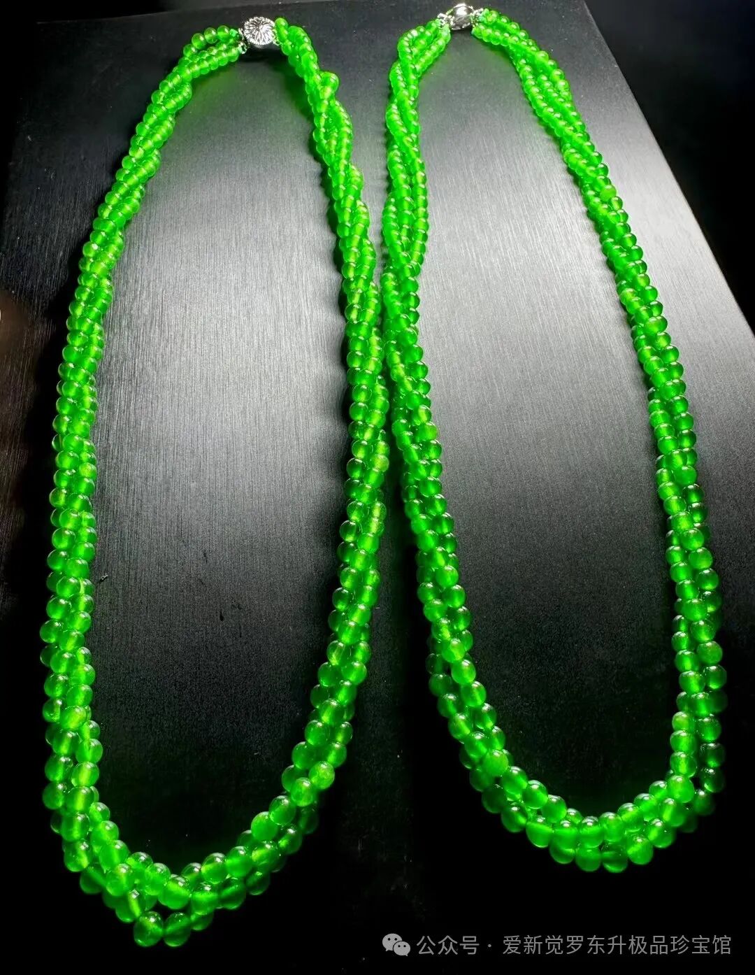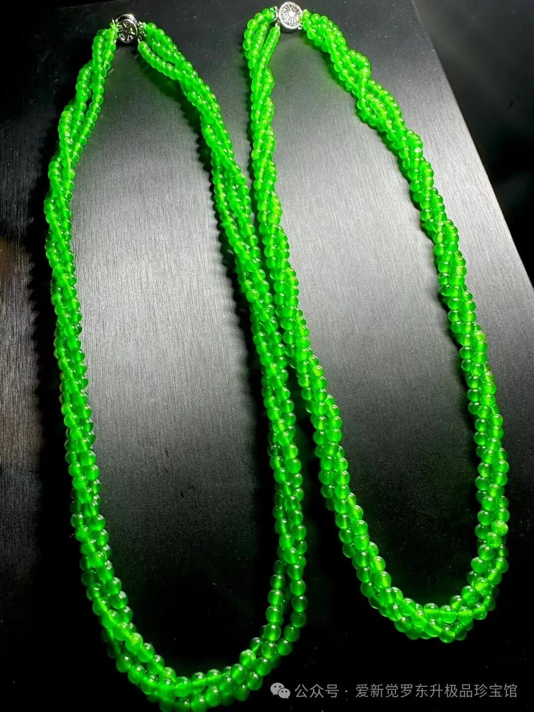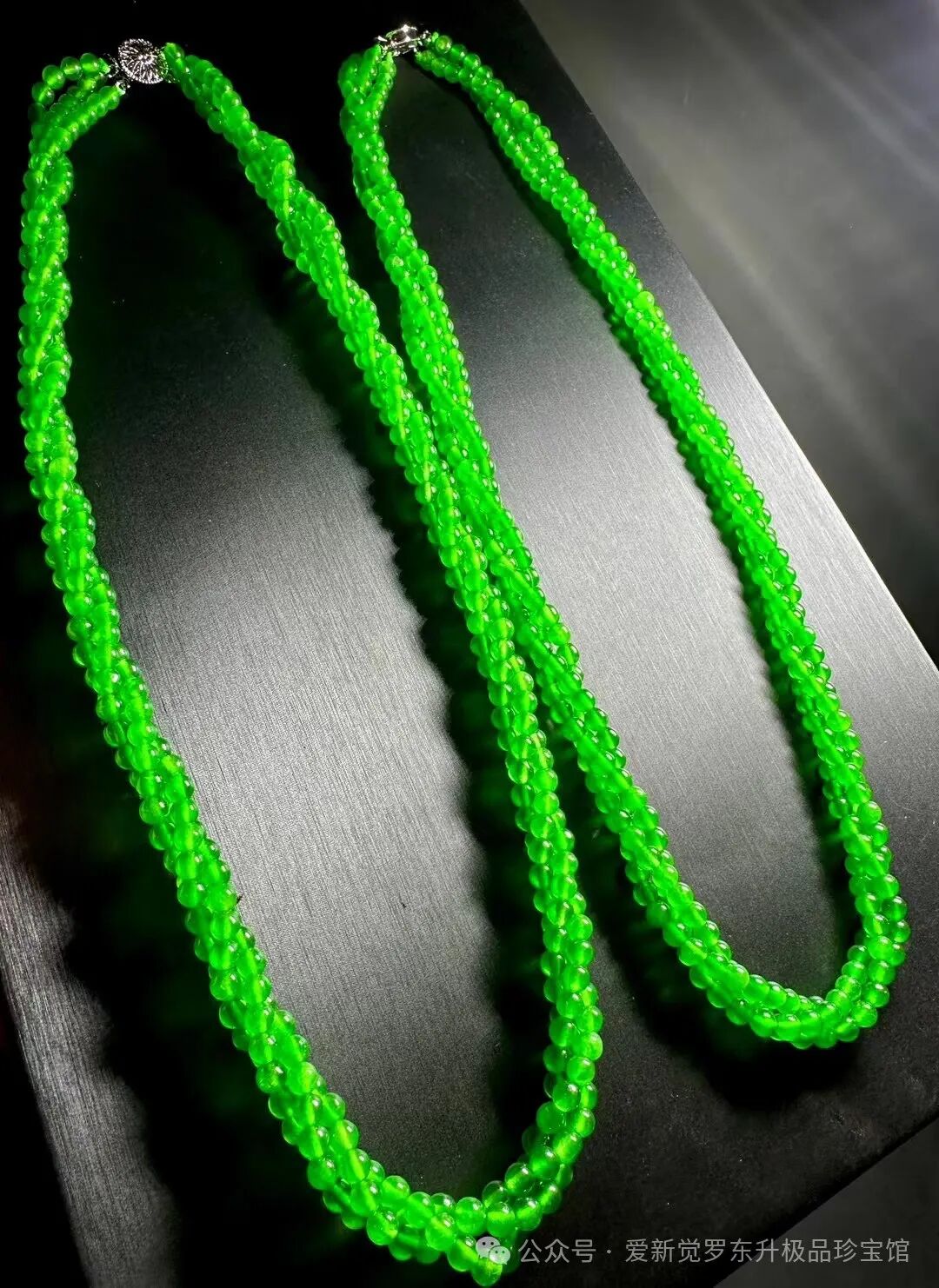 老翡翠 完美无裂 龙石种珠子【三股麻花项链】直径0.4mm