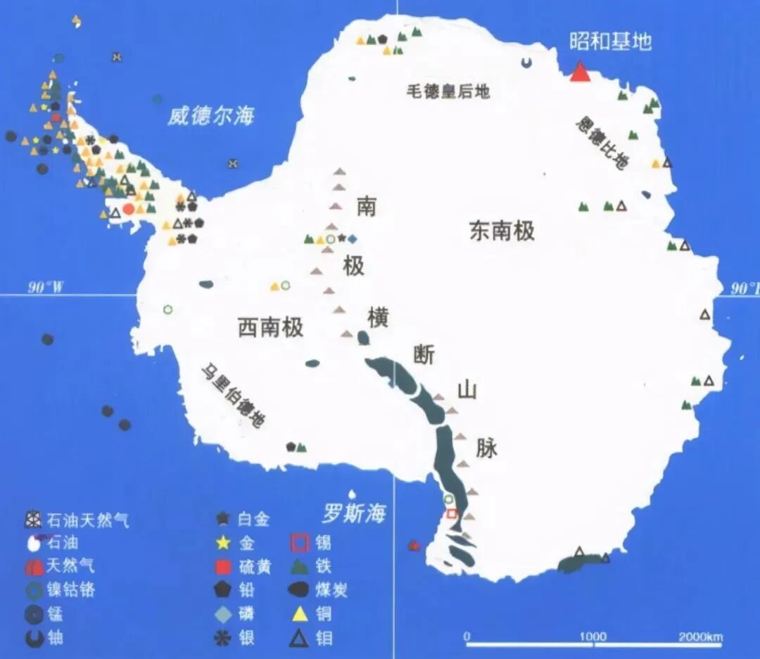 在南极洲广阔的冰层下,蕴藏着极为丰富的资源。其蕴含的天然气约有5万亿吨,石油超过1000亿桶,煤炭储量5000亿吨左右。其中煤和铁的储量,世界第一。