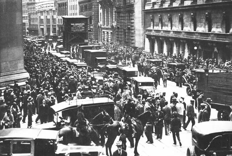 一时间股市撤资严重,导致了股市崩跌,在“踩踏”事件下,掀起了大萧条的序幕。