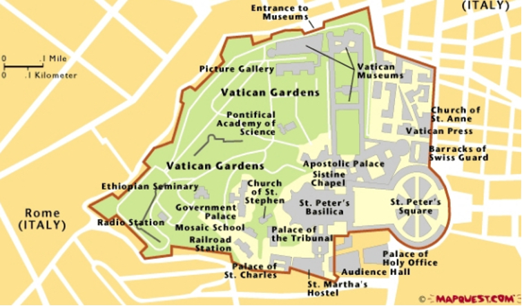 它位于意大利的心脏地带,坐落在首都罗马城西北角的高地上,被誉为“国中之国”。