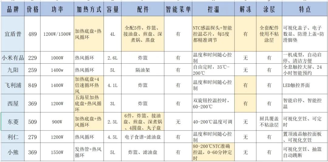 这片文章对目前卖得火爆的宜盾普、东菱、九阳、西屋、飞利浦、小熊、利仁、小米有品7个品牌的空气炸锅做了横向对比,以便小伙伴们参考。