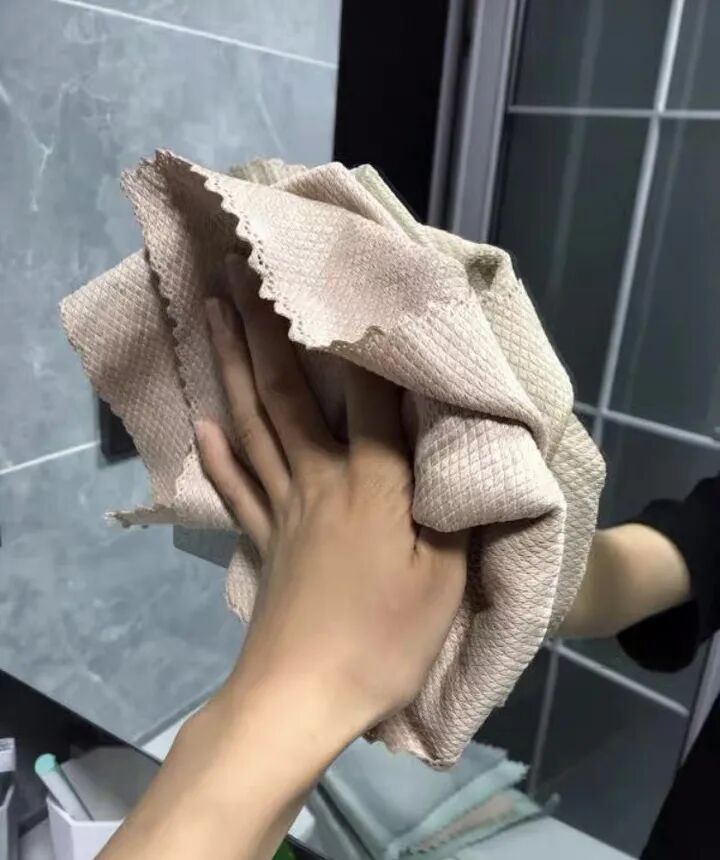 用泡过柠檬酸的水来擦水垢也是一抹即净,加上鱼鳞布超强的吸水性以及不掉毛、不留痕的特性,擦一次玻璃就透亮了~