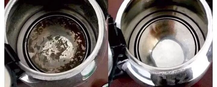 以水壶为例,倒一袋进水壶里,冲上热水浸泡5分钟后回来看壶里的水垢就浮在水面上了,倒掉之后就变得干干净净!