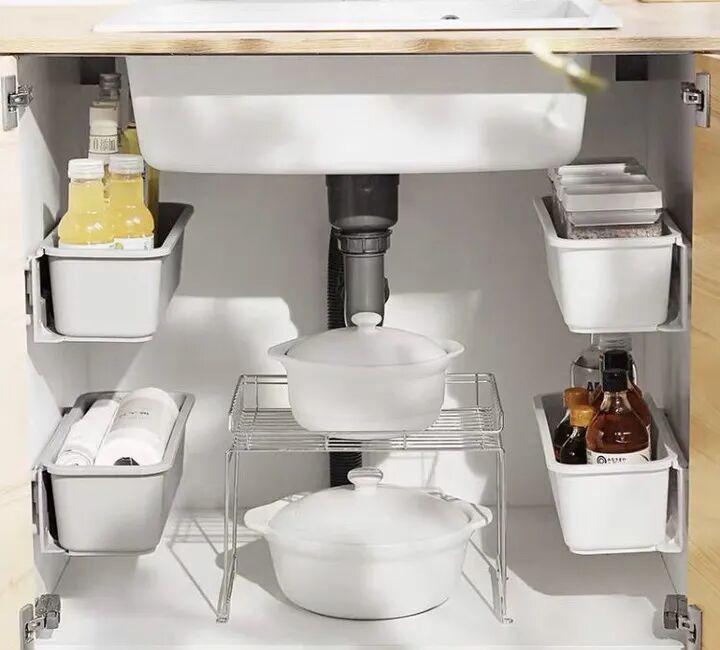 两侧可以上免打孔置物盒,存放囤货的化妆用品、肥皂。