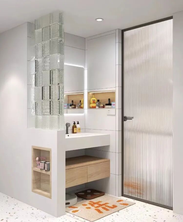 这个有些人会有深刻体验,密闭更好地卫生间给人幽闭恐惧的感觉,玻璃可以极大地减少这个问题的出现,即便是空间没变化