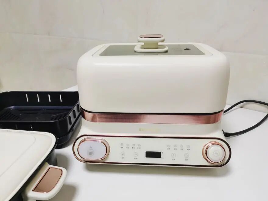 推荐理由:性价比高,价格低但是容量足够大、功能全、配件全,料理锅该有的性能一样没落下,还增加了蒸汽炸、空气炸功能。玫瑰金+米白的配色很高级~1600W功率+5L大容量一家4-6口人也能轻松应付。