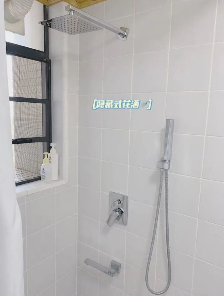 特别值得说的是我家淋浴嵌入式花洒(天幕花洒+手持花洒+下部水龙头)。由于整个管道都隐藏在水泥墙里,只有喷头是在外面的,干净整洁而且易清理,十分推荐。