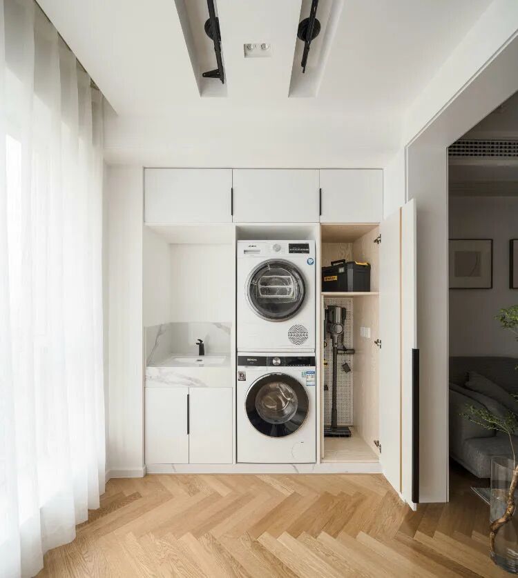 一侧做日常洗衣区、洗护用品收纳区: