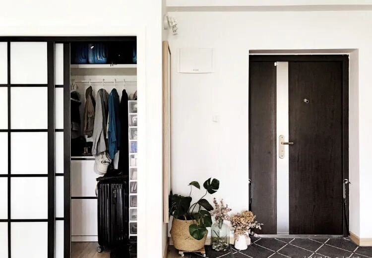 进门玄关柜已经是很常见的收纳方式,但有了门口的储物间,换鞋这种事已经可以在门外解决。