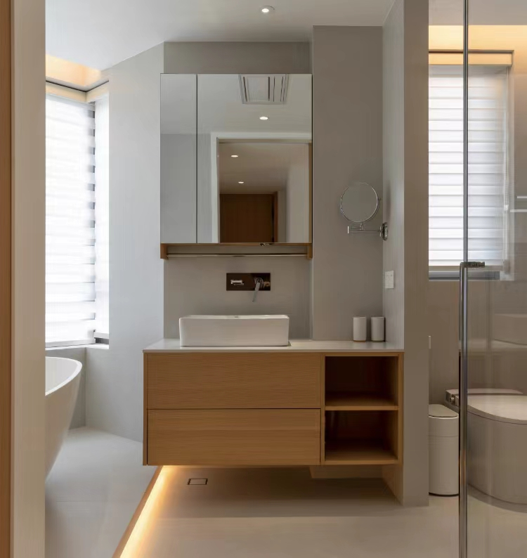 做卫生间面盆地柜的时候要先考虑好面盆的尺寸免得日后装不下。台下盆比台上盆秀气,好看,好打扫。