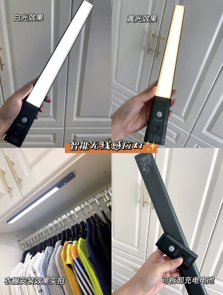 为了解决这个问题,我在网上淘了一个无线智能感应灯加装在常用的衣柜里,充电式的灯带还挺方便: