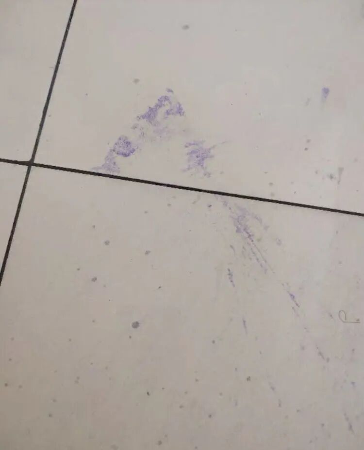 大理石渗色清洁可以和瓷砖渗色合起来说,像这种墨水渍,用专用的清洁剂可以轻松洗净。清洗前: