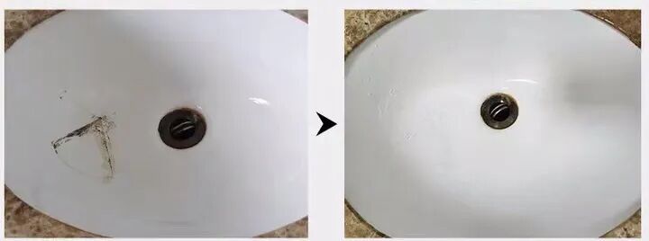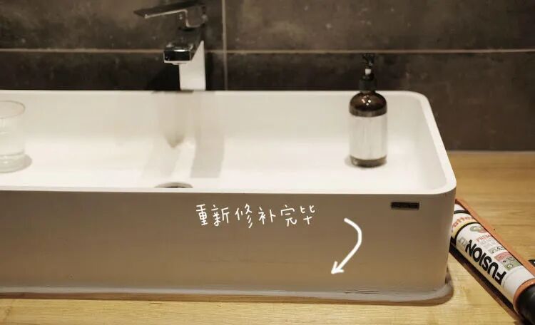 3.针对瓷砖的划痕、裂缝:可以用瓷砖修补剂。这件可以说是神器一样的东西,在将洗手池清洁修补之后可以达到这种效果: