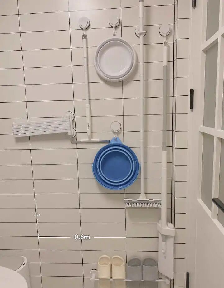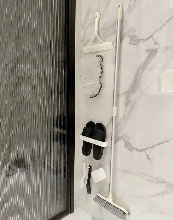 沐浴区做拖鞋收纳、玻璃清洁工具收纳。
