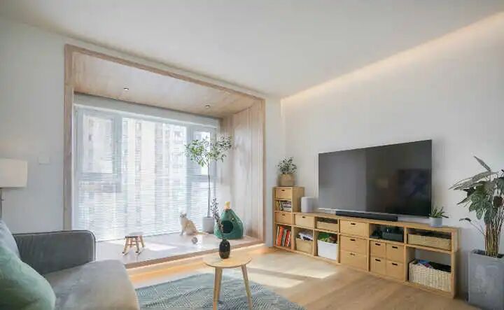 室内通透性极好,能一眼望到窗边。没有大茶几、吊灯的视觉阻断,显得更顺畅;