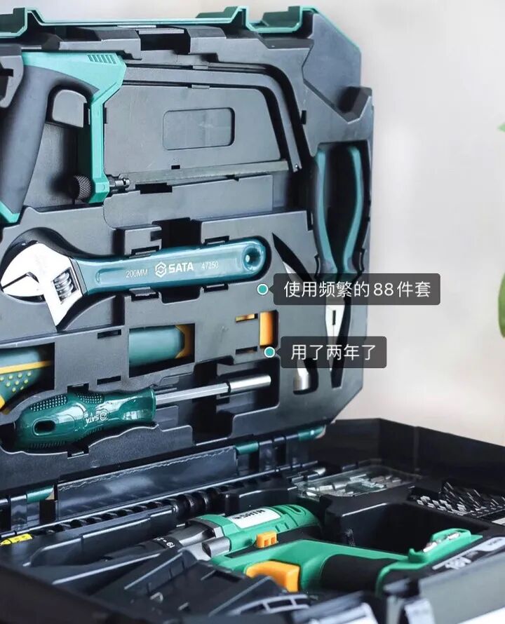 买成套工具箱的好处在于:用的时候直接把箱子拎出来就好,用完收起来,基本没有什么收纳烦恼,也终结了着急用一些小零件时却翻箱倒柜却找不出来时的烦躁。