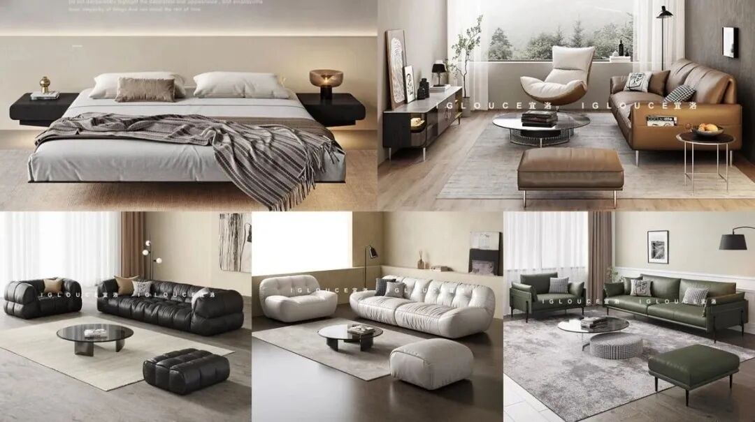 主打头层⽜⽪家具,设计风格对比我看过的其它品牌,更有质感一些,它也有全屋搭配的方案,很多都很符合当下的审美。