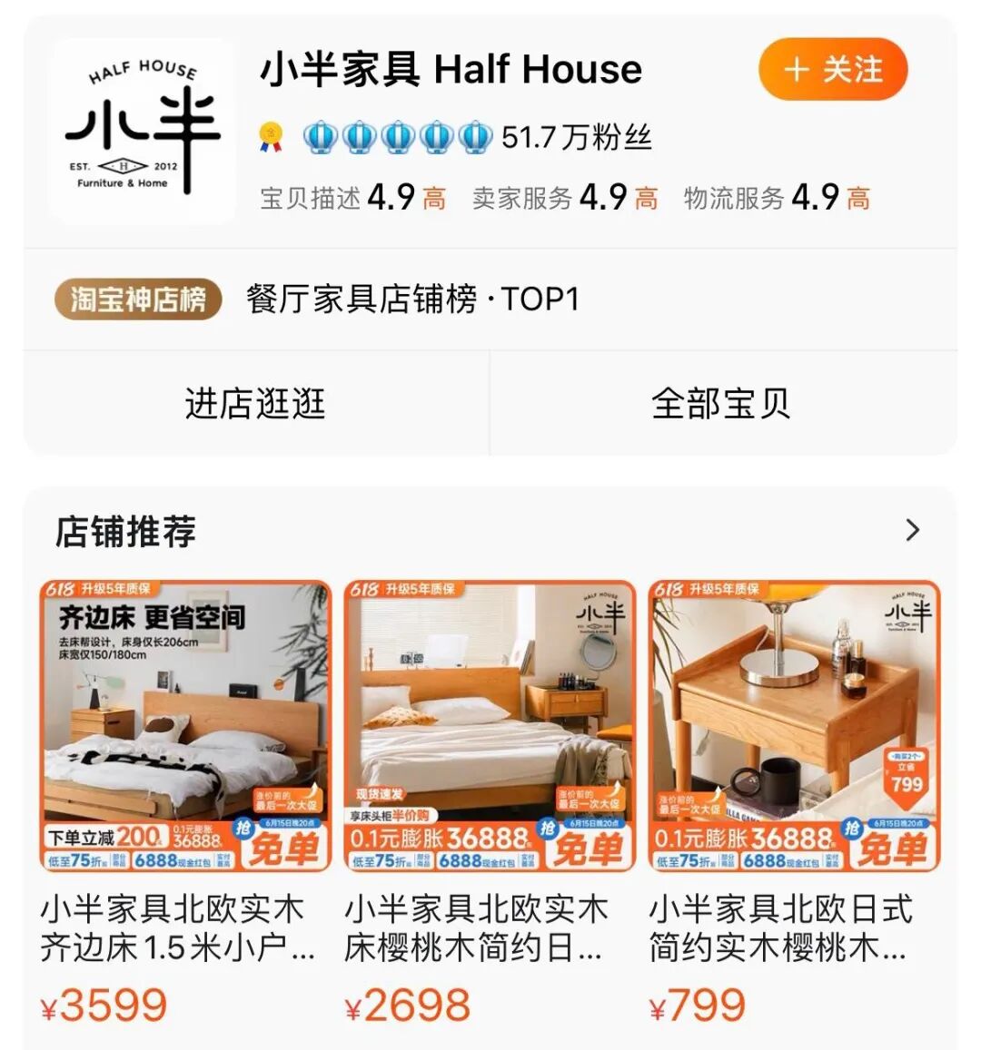 不过实木家具类有很多家居店,包括源氏木语、二黑木作等,小半的价格对比同样做实木的源氏木语价格会稍微高出一些,可以考量对比之后再做决定。