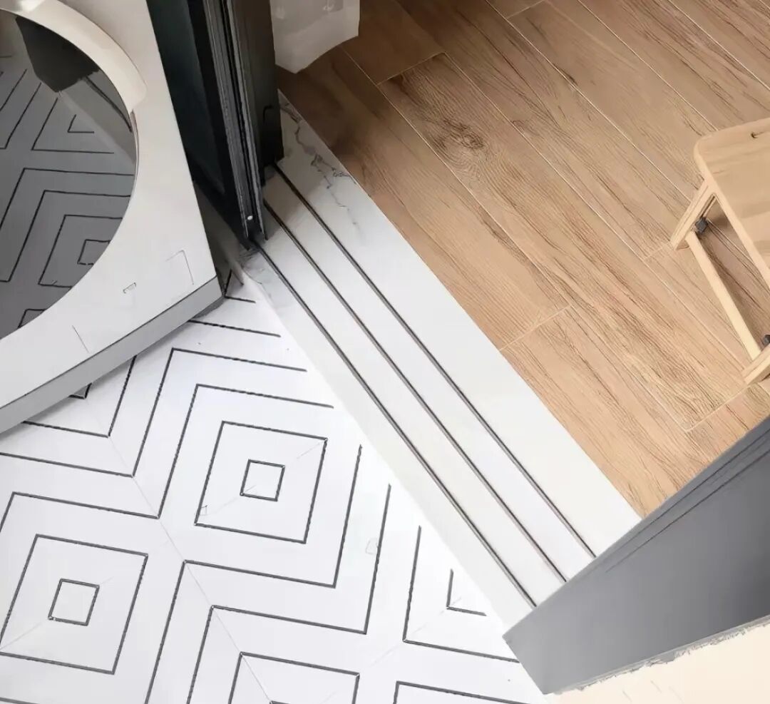②瓷砖和木地板用3cm收边条收边,简洁利落又省钱!这都是比用门槛石更优的选择。