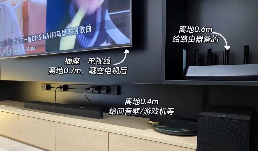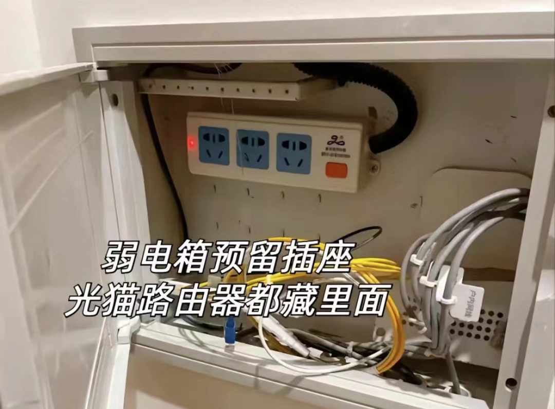 插座安装插排后期光猫和路由器都可以藏在里面,不占用空间还美观。