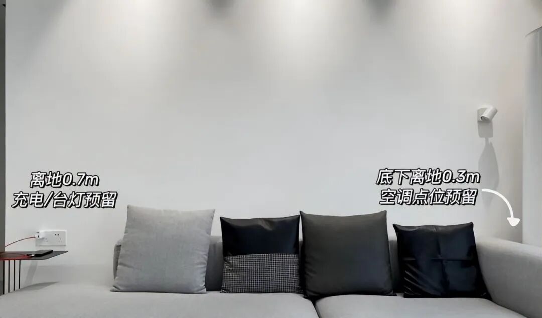一是沙发旁边手机充电方便,二是沙发旁也方便给空气净化器、电风扇等小家电使用。