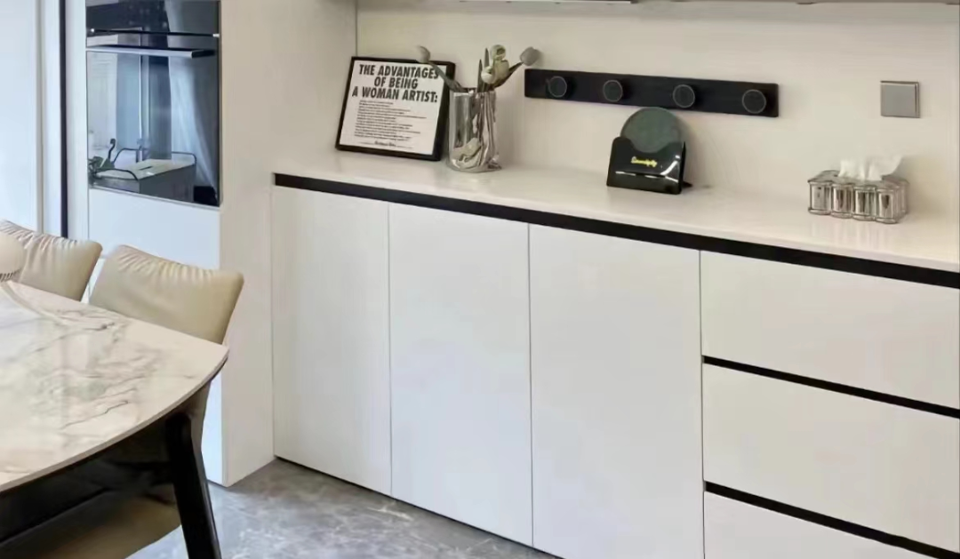 生活久了以后小家电会越买越多,餐边柜是很好一块收纳的地方。另外手机充电什么的也方便。