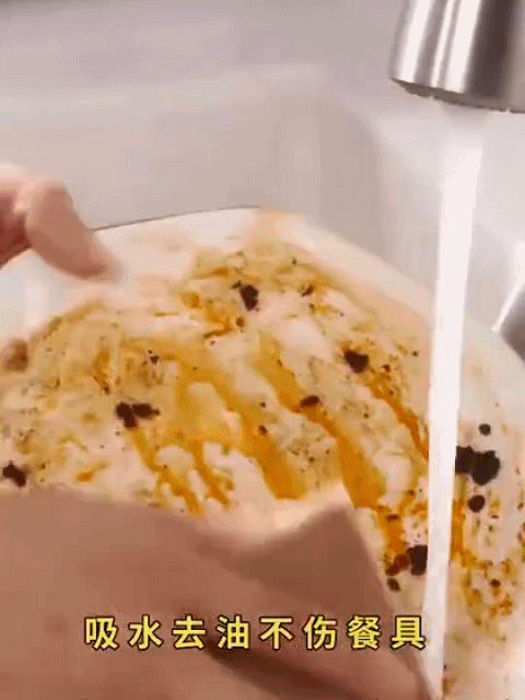 跟钢丝球一样能强力去除顽固污渍,但是比钢丝球好用,洁净效果好又不刮伤餐具。