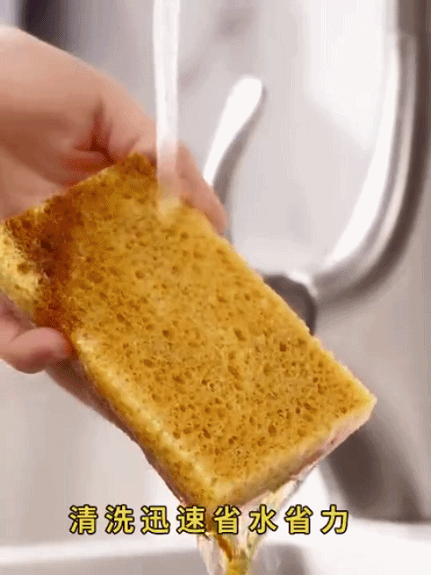 而且这样的百洁布,油污遇水能够自然分离,清洗起来更加方便,一冲就干净~