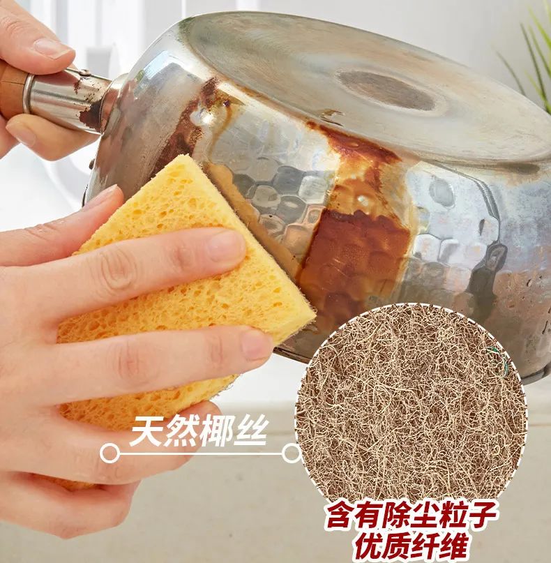天然椰丝、进口木浆棉两种材质,具有双重功效,可软可硬,强力去油,一“布”到位。
