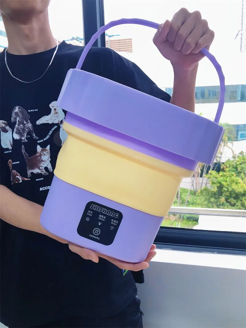 这个mini洗衣机,最让人喜欢的地方,就是它打破传了传统洗衣机笨拙、占地还不便携的弊端。