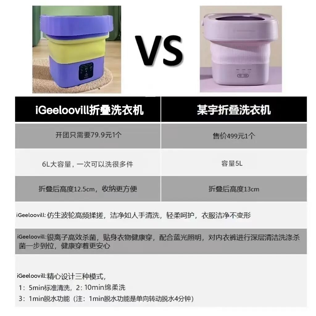 功能方面都差不多,iGeeloovill折叠洗衣机只比某宇少了一个加热功能!