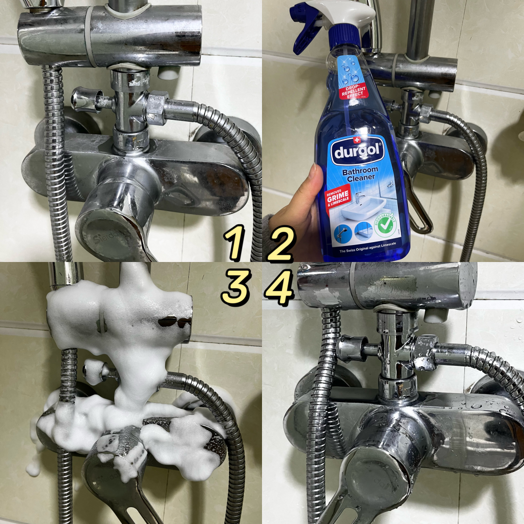 清洁水龙头等五金件也是同样操作,喷上后静置2分钟水垢就能瓦解掉七七八八!