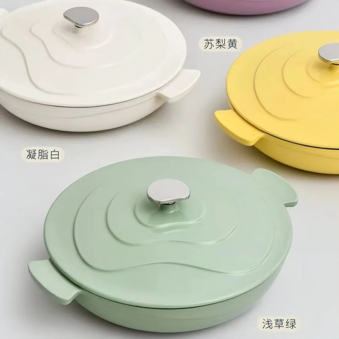 对于锅子大小来说,选择范围也足矣~从16CM的小圆锅到28CM的海鲜锅3种锅型可选。缺点是一层的珐琅涂层感觉上会稍显单薄。